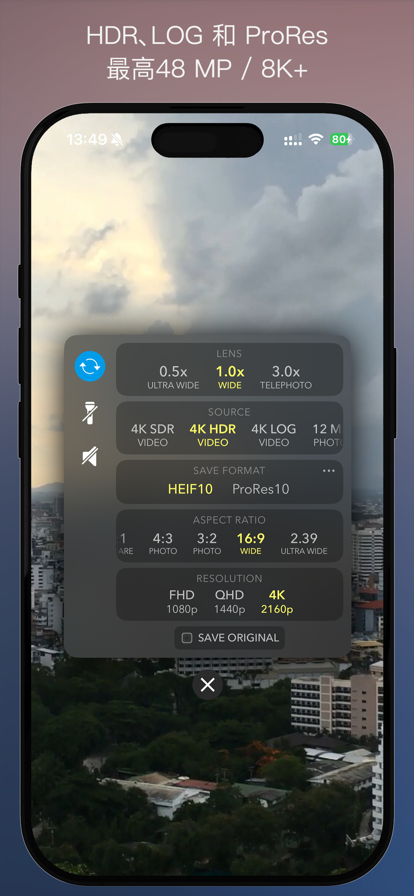 Pro Camera是一款集合了专业拍照、专业视频拍摄、照片编辑、视频编辑为一体的APP。融合了强大的计算摄影技术,充分发挥你的相机潜能。 — 相机拍摄模式 — - 拍照 - 视频 - 双摄像头 - 三摄分屏 - 景深 - 连拍 - 微距 - 实况照片 - 慢快门 - 延时摄影 - 慢动作 - 空间视频 - 多重曝光 - 运动连拍轨迹 - 包围曝光 - 0锐化 - 柔焦镜头 - 星芒镜头 - 移轴镜头 - 鱼眼镜头 - 三维打光灯 - 100MP 超清像素 - 超亮闪光灯 - 镜像模式 - 3D夜视仪 - VHS - 胶片 - 微笑 - 3D动图 — 相机主要功能 — - 手动控制(对焦、快门、ISO、白平衡) - 独立的控制锁定(对焦锁定、曝光锁定、白平衡锁定) - 白平衡控制(自定义、日光预设、阴影预设、阴天预设、钨丝灯预设、荧光灯预设、闪关灯预设) - 150+ 实时高性能预设(单次拍照、视频模式、延时摄影、3D影像) - 众多镜头支持(广角、长焦、超广角、前置、后置广角双摄、后置长焦双摄、前置深感) - 众多画幅比例(3:4、9:16、2:3、1:1、4:3、16:9、3:2) - 2-10倍数码变焦 - 拍摄网格(支持众多画幅比例) - 实时亮度直方图 - 拍摄水平仪 - 测光指示 - 支持水平和竖直拍摄 - 音量键拍摄 - 闪关灯(自动、开启、常亮、关闭) - Fn参数设置(可保存9组重要拍摄参数) — 拍照主要功能 — - 48MP拍照支持格式:HEIF、JPEG、无损TIFF、ProRAW(iPhone 14 Pro 以上机型使用) - 照片品质选项 - 图像拍摄格式:HEIF、JPEG、无损TIFF、RAW、RAW+JPEG、ProRAW(iPhone 12 Pro 以上机型使用)、ProRAW+JPEG(iPhone 12 Pro 以上机型使用) - 图像包围曝光拍摄(支持HEIF、RAW、TIFF三种格式) - 最长60秒慢快门拍摄 - 连拍功能 - 智能微笑拍照 - 慢快门感光度调节 - 景深人像模式支持先拍照后对焦,出片后支持模拟光圈控制(f/1.2-f/16)以及多种焦外效果选择 - 3D模式支持MOV、GIF格式导出 - 拍照添加位置信息标签(支持在地图上查看照片的位置信息) - 拍照镜像前置镜头 - 3秒、5秒、10秒计时拍照 - 拍照图像Exif元数据查看支持(光圈、快门、ISO、拍摄镜头、拍摄机身、像素宽高、色彩空间、镜头焦距、图像色彩直方图等) — 视频主要功能 — - 4K MAX(4032x3024)超高清视频拍摄(24fps、25fps、30fps) - 4K超高清视频拍摄(24fps、25fps、30fps、48fps、50fps、60fps) - 1080P高清视频拍摄(24fps、25fps、30fps、48fps、50fps、60fps、96fps、120fps、240fps) - 720P高清视频拍摄(24fps、25fps、30fps、48fps、50fps、60fps、96fps、120fps、240fps) - 480P标清视频拍摄(24fps、25fps、30fps、48fps、50fps、60fps、96fps、120fps、240fps) - 普通防抖、电影级防抖 - 高级音频设置(音频格式AAC/PCM、音频通道、音频采样频率44.1KHz/48KHz) - 视频拍摄手电筒 — 照片/视频编辑 — - 150+ 专业预设(图像处理和视频处理) - 150+ 图层素材 - 众多比例图像裁剪、图像旋转、图像翻转 - 众多比例多彩边框 - 图像基础调节(亮度、曝光、对比度、饱和度、白平衡、层次、雾化、锐化、高光、阴影等,支持RAW图像处理) - 图像高级工具 (高光阴影色调,调节色彩亮度,HSL专业工具,高级白平衡) - 图像色差处理 - 图像合成(20多种混合模式) - 图像颗粒度调节 - 胶片模拟(不同风格边框以及不同样式时间水印) - 景深工具(可读取带有深度信息的照片,模拟景深控制) - 3D工具(可读取带有深度信息的照片,将二维照片转化为三维影像) - 图像信息(可读取带有Exif元数据的照片,查看照片的拍摄光圈、快门、ISO、拍摄镜头、拍摄机身、像素宽高、色彩空间、镜头焦距、图像色彩直方图等信息) 隐私政策:http://www.sjslai.com/privacypolicy.html 使用条款:http://www.sjslai.com/termsofservices.html 关于数据收集 1.该应用不会收集任何用户信息,更不会收集用户面部信息,用户在离线情况也能使用APP 2.我们没有收集用户的信息和脸部信息,所以不存在收集用户信息和脸部信息的目的 3.用户可以选取自己的照片来添加滤镜等效果,也可以实时录制视频。照片和视频不会被上传,不会被远程存储,不会分享给第三方 4.我们隐私政策的【数据收集】部分,也有关于收集数据的解释