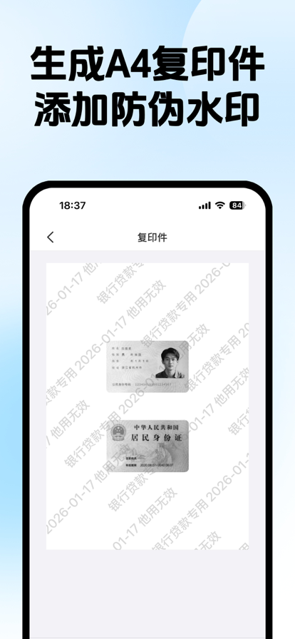 证件卡包是一款专业、完全本地运行的证件扫描应用,帮助您更安全高效地管理身份证、护照、银行卡、户口本、学生证等各类证件。 【核心功能】 • 智能扫描 - 支持身份证、驾驶证、银行卡等多种证件 • OCR识别 - 自动识别证件信息,快速录入 • 分类管理 - 证件组管理,正反面自动关联 • 图片处理 - 裁剪、滤镜、增强,专业文档处理 • 水印添加 - 多种水印样式,保护证件安全 • 复印件制作 - 一键生成标准尺寸复印件 • 证件照制作 - 支持至多多规格证件照 • 安全保护 - Face ID/Touch ID 加密,数据本地存储 【隐私保护】 • 100% 本地处理,不上传任何数据 • 支持生物识别加密 • 数据完全由您自己掌控 【会员特权】 • 去除水印 • 平铺水印特效 • 更多处理方式 • OCR、批量扫描、拼图模式等更多功能持续更新 隐私政策:https://mark-pen.github.io/idscan-privacy/privacy_idscan.html 用户协议:https://mark-pen.github.io/idscan-privacy/terms_idscan.html