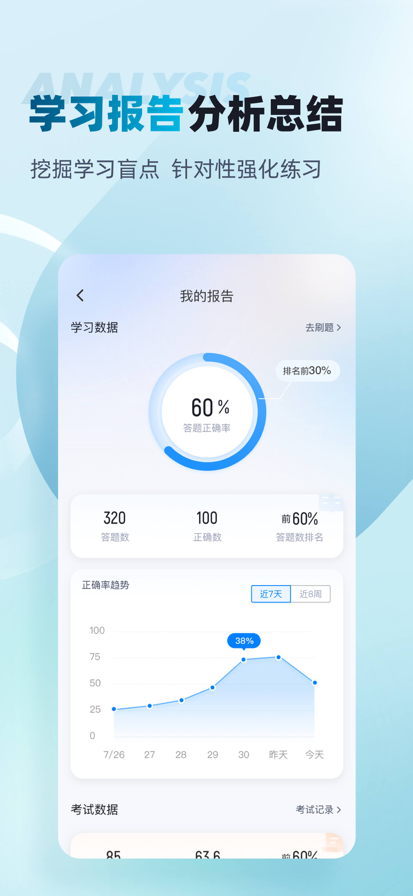 步知公考,是专为线上备考人群提供学习、训练、交流的在线备考智能教育平台。 特色服务: 1.智能训练题库: 海量题库,收录最新题,提供原创试题文字和视频+申论AI批改+面试示范作答。 2、训练营:真模训练营网罗海量试题整卷、免费在线模考、视频解析课;时政FM音频和文稿,轻松积累时政热点;面试对练答题点评一体,准确把握考官思维。 3、互动交流:每日更新大咖老师们的干货技巧文章,更有学员问答、互动、成功经验分享等。 立足于考情,追求备考效率及考试应变性,通过对线上学习场景的深入研究,提出更符合线上备考的学习、训练方式;AI赋能对能力课、能力训练、阶段测评、臻题模拟进行全方位技术追踪,提供多维度视角,辅助用户自我学习管理,规划具有针对性的提升路径。 高效、实用、具有针对性是我们的追求。 客服电话:4000005784