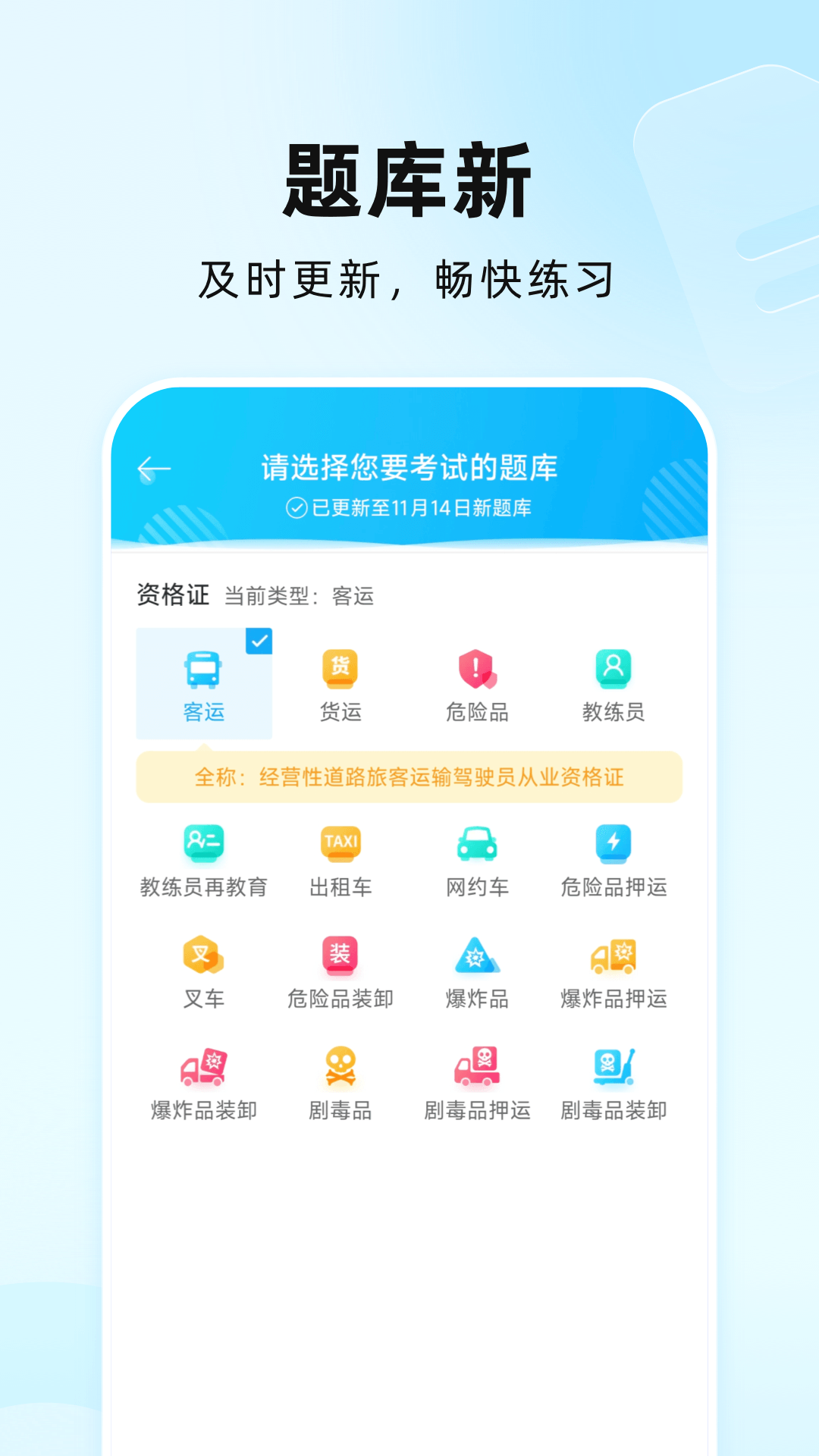 驾校一点通极速版由驾校一点通官方出品,是专为驾校学员设计的优质学习工具。我们致力于提供高质量的学习资源和良好的用户体验,核心内容覆盖驾考全程,帮助驾校学员高效备考、快速考驾照。 我们为学员提供从科一科四练题,科二科三模拟练车直至领取驾照等一站式驾考服务,用科学有效的方式助力学员驾考。置入语音读题功能,解放双眼,充分利用碎片时间,随时随地练题;秒懂答题技巧,科一科四试题题题有技巧,清晰易懂记忆更快速。 【产品特色】 1、与众多驾校合作 我们与多家驾校建立合作关系,通过与驾校合作,我们能够提供与驾校教学内容相符合的学习资源,帮助学员更好地备考驾照考试。 2、包体小更轻量,使用体验更流畅 我们致力于提供流畅、快速的应用体验,对产品进行了优化,使其体积更小,占用更少的存储空间。这样一来,无论是加载题目还是切换功能,都能够得到迅速的响应,让学员在使用过程中感受到流畅和高效,下载和安装应用程序,也不必担心手机存储空间不足。 3、多样化的学习资源 我们为学员提供全面的学习资源,包括题库、模拟考试、交通法规、驾驶技巧等内容。学员可以根据自己的需要选择学习内容,灵活地安排学习进度。 4、2025新题库,持续更新 我们提供小车、客车、货车、资格证等车型,包含科目一、科目四国内通用题库和地方题库,实时紧跟车管所题库更新。学员可以随时获取新题库、答题技巧和考试信息等,确保他们获得有效的备考资料,备考更轻松。 5、个性化学习建议 我们会根据学员的学习情况和表现,提供个性化的学习建议。通过分析学员的答题情况和知识掌握程度,我们能够帮助他们发现自己的薄弱点,并提供相应的辅导和建议。 【联系我们】 问题及建议反馈:400-011-8360