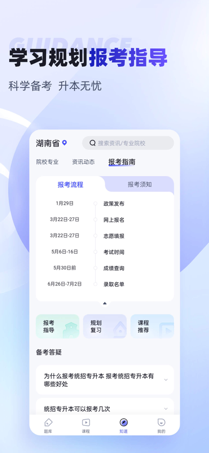 统招普通专升本全日制3+2 2025年-2027年普通专升本,又称统招专升本、应届专升本、全日制专升本、专升本3+2等。本产品精准服务专科大三应届毕业生的专升本,同时很精准服务于大一、大二在读有志备考专升本的专科学生,提供深度、全面、精准的备考学习和服务。旨在帮助在校专科学生通过统招普通专升本,进入理想的本科学校、并且选择适合的专业。 【专升本的学校和专业】 覆盖全国专升本的院校和专业的详细介绍,为考生提供院校查询、招生简章、考试大纲、院校和专业PK、王牌专业、AI测试适合的专业和学校等,一站式帮助考生更好的选择理想的本科学校和适合的专业。 【专升本题库和在线刷题】 汇总专升本题库,根据科学的学习方法和高效记忆模式,提供快速有效的在线学习服务,为考生提供快速练习、知识点练习、高频考题、历年真题等,有针对性的助力专科学生在专升本考试中快速提分。 【名师课程和精准视频】 汇集专升本的一线名师,研发的专升本视频课程,包含政治、大学英语、高等数学、面试、各专业考试等。精准对标考试内容,让考生可以更高效、不受时间和区域限制、远程在线获得系统的视频学习,加强知识学习,高效的提高考试分数。 【全面资讯和在线答疑】 专升本因地区、院校、报考专业等的不同,每年的政策也有调整,我们为你提供全面的资讯动态、政策解读。我们邀请深耕专升本的一线老师,为你提供丰富的升学资源,提供专业的在线答疑。