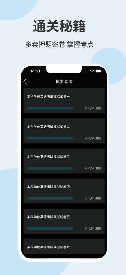 学位英语真题库APP是一款为学位英语考试而生的实用性APP,包含了海量的知识考点试题,提供在线刷题,知识点练习,错题整理,模拟考试等内容,帮助用户提升学习效率,获得更好的成绩,增加通过率 【高质量的模拟考卷】 学位英语真题库APP新增模拟考试功能,学位英语考试可按照自我练习的考点选择相对应的模拟试卷,也可选择搭配好的模拟整卷考试。 【多样式的刷题模式】 学位英语真题库内含考点练习,全国通用卷以及地区卷模拟练习,以及按照固定考试比重的随机式的抽题的真题考场,成绩单实时记录考试数据,一点一滴的反馈考生近期学习状态以及自我正确率的提升,大大的给予考生通过考试的信心。 【优质题库帮你提升成绩】 智能刷题+知识点练习+历年真题+模拟试卷+高频错题,以题带点,助力快速提分。