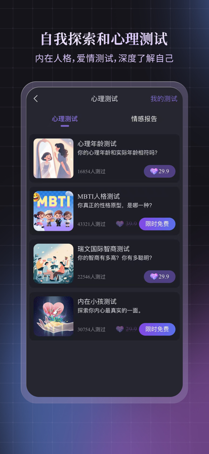 欢迎来到心岛日记,一个治愈情绪的温暖世界。 在这里,难过的人不孤独,你的难过、焦虑和迷茫都会被抚平。 在心岛,你可以安心倾诉情绪和苦恼,得到的只有温暖的回应和安慰; 在心岛,你可以遇见感同身受的人和事,相互鼓励,走出低落和迷茫。 「倾诉情绪,遇见感同身受」 在记录心情后,心岛将燃起温暖的篝火,随之出现的,是现在和你心情相同的人们: 或许你们都是为学业压力焦虑的学生党,对自己工作和前途迷茫的打工人,或者都是在同一个雨天偶遇一只流浪的小猫。 无论什么心情,在心岛总能遇见感同身的岛友。温暖互助,难过的你不孤独。 「温暖互助,难过的人不孤独」 每个夜晚,心岛会升起由巨鲸托起的「浮岛」。登上浮岛,你将拥有安全的匿名身份,没人知道你是谁。 无论是主持人还是倾诉者,都是匿名的同龄人。在这里,倾诉自己的苦闷,或者倾听其他人的故事。 如果烦恼太沉重,你也可以将它投进解忧信箱,海潮会把信送到能帮你解忧的岛友门前。 「揭开面具,做心中的自己」 在心岛日记,每一个居民都拥有自己的灵魂形象。 「被伤痛和往事牵绊,无法前行」、「拖延症晚期患者」、「讨好型人格」——无论你是怎样的性格和灵魂,在心岛总能找到心中的自己。 遇见陌生的心岛居民时,你只能看到他们戴着各种动物面具的形象。关注的那一刻,面具揭开,你才能看到Ta此刻的喜怒哀乐。 在心岛,没有性别、年龄、外貌的压力,让我们用灵魂遇见彼此。 「免费治愈内容,助你减压、自律」 落雪的古风小镇、枫叶纷飞的森林湖畔、云中绵绵细雨的天空之城……唯美治愈的轻音乐+动画场景随心切换。 无论是睡前助眠还是自习、工作专注,都能事半功倍。 一个人自律太孤独,让大家相互陪伴吧。心岛准备了各种情绪训练:「7天提升注意力冥想」、「7天改善焦虑训练」,「14个问题新认识自己」…… 免费开启自助训练,和岛友们一起养成好习惯,变成更好的自己。 「心岛荣誉墙」 2022年华为匠心奖 2022年小米金米奖 2021年OPPO至美奖、应用时刻推荐 2021年华为应用市场年度十大新锐应用 2022年Vivo APP研究所推荐 无论现实里有多少风雨,心岛的篝火会一直为你亮起。每当疲惫无助时,请记得回来,接收来自另一个世界的温暖和善意。 官方微博:心岛日记APP 官方公众号:心岛日记 抖音、快手:心岛日记 B站:心岛日记APP