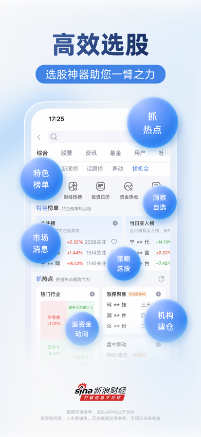 新浪财经APP是一款全面而深度的财经信息服务平台软件,致力于为广大投资者提供最新、最全、最专业的财经信息和金融市场行情。我们的产品服务包括: 1. 财经新闻:新浪财经拥有20余年专注财经新闻报道的丰富经验,资深编辑团队7*24小时不间断为您追踪国内外金融动态,政策风向及股票重大情报,确保您把握每一个投资良机。 2. 股票市场:股票市场覆盖面广泛,包括A股、港股、美股、英股、ETF、债券、全球股指、MSCI指数等,涵盖全球30多个国家、40多个市场。 3. 基金市场: 覆盖公募、指数基金、货币基金、QDII等多类型基金产品,提供实时净值、估值走势、历史回报、分红记录、基金经理与持仓等权威数据。配备专业的基金筛选、对比与智能推荐功能,帮助投资者高效发现优质基金。除行情服务外,新浪财经还提供便捷、安全的基金交易服务,支持基金申购、赎回与定投管理,实现从数据洞察到交易执行的一站式基金投资体验。 4. 期货市场:接入国内外全部主流期货品种,涵盖100多种期货产品,如A50、黄金、原油、玉米、大豆等,提供功能全面、响应迅速且准确稳定的行情服务。提供全市场期货短视频信息汇总、以及国内品种持仓分析工具,追踪热门品种,热门期货公司席位变化。 5. 外汇市场:提供全球150多个国家和地区的货币实时行情,涵盖美元指数、在岸及离岸人民币、欧元、英镑、港币、日元等,同时提供国内各大银行的实时外汇牌价和购汇/结汇比价服务。 6. 特色功能: * 自选股:支持将所有品种加入自选,功能丰富,包括浮窗盯盘、分时预览、多股对比、分组管理和股价提醒等,是广大用户信赖的盯盘利器。 * 资金流向:实时追踪大盘、个股、指数、板块的资金轨迹,及时跟踪北向资金流向,是投资者洞悉主力动向的必备工具。 * 海量数据:全面丰富的金融数据与投研工具,包括基础行情、个股资料、财务数据、龙虎榜、市场概览等。 * 模拟交易:提供A股、港股、美股、期货等市场模拟交易练习场及各类比赛,与投资高手在线切磋,共同学习进步。 * 指数地图:一目了然地展示全球主要市场的实时行情,并对比全球各类资产的收益率,让全球投资尽收眼底。 * 智能预警:实时推送全市场重要财经信息、股票异动、重大公告及机构研报,助您及时作出响应。 * ESG:提供权威、全面的ESG资讯、评级、电子月刊、峰会及论坛等内容,是获取ESG相关信息的首选平台。 新浪财经,为您打破信息不对称,让投资变得更简单! 【联系我们】北京市海淀区西北旺东路10号院西区8号楼新浪总部大厦 【官方网站】https://finance.sina.com.cn 【官方微博】https://weibo.com/finance 【QQ 群】 537206810 【客服电话】 4006-900-000 【客服邮箱】sinacsc@vip.sina.com