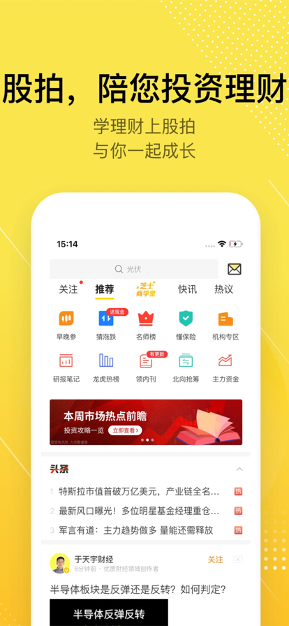 【应用描述】股拍,是一款学习海量手机财经知识软件,是一个集专业性、实用性和互动性于一体的财经知识分享平台。为您精选财经热点资讯,每日精彩内容不断更新,条条都是精华,教您你挖掘行业机会、提升实战技巧。同时通过大咖们的精彩讲解和深入分析,让用户能够更好地理解财经世界,把握市场脉搏,实现财富的增值和保值。 【特色功能】 1、 陪伴式教学——早九晚十陪您直面市场资讯, 每个交易日,在线直播早九晚十在线教学,通过高效、生动且深入的教学方式,系统化地学习财经知识。根据市场动态和政策变化,及时调整教学内容,确保用户学习新鲜实用的财经知识。 2、 优质短视频——零距离交流 丰富的财经短视频内容,专业与趣味合一,轻松了解前沿财经信息,为用户提供个性化的视频资讯推荐。科学观念优质财经短视频以对财经事件、市场趋势进行深入剖析和解读,帮助用户理解背后的逻辑和规律。 让财富增长变得更简单! 3、热点话题讨论——行业板块动态快人一步,围绕热点话题及时输出图文资讯,听大咖深度解读,与财友们多方位探讨。各方观点激烈碰撞,思维火花四溅,通过深入讨论和交流,让用户能更好地理解财经世界。 股拍专注于财经知识教学。 快下载股拍APP,开启财经内容的学习之旅。尊享个性化资讯、精选短视频与在线教学服务,助您迅速入门财经知识,有效提升财富积累能力,实现财务自由新境界。 【联系我们】在App使用过程中,如果您遇到任何问题,或有任何意见与建议,可以通过以下方式反馈: 客服邮箱:kefu@secon.cn 客服微信:gupaikefu 官网新浪微博:股拍官方 微信公众号:股拍