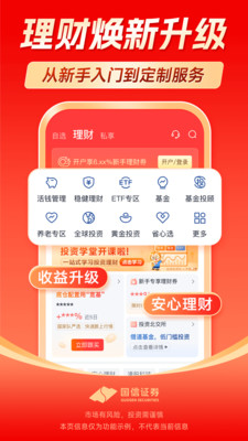 国信金太阳是由国信证券自主研发的一款一站式金融投资理财软件。国信金太阳让您随时随地掌握证券行情、了解财经资讯、进行股票证券开户与交易,基金理财等各种金融服务,通过专业的服务为客户创造价值,是您随身的投资工具和理财伙伴。 【亮点】 1、丰富便捷:简洁的界面,丰富的产品,方便的快捷入口,场景化的引导,可视化的数据及资产分析,智能化的工具,让您准确的了解大盘趋势,股票交易快速安全; 2、极速行情:左右滑动切换自选、市场、板块,同时调整数据信息让整体简洁化,支持便捷的融资买入、融券卖出,技术采用原生开发技术,股票行情体验流畅,让您了解市场行情; 3、场景交易:重新布局突出资产显示,打造类似“申购宝”、“国债逆回购”等场景型交易产品,提供智能选股盯盘、产业链图谱、形态选股、筹码分布、估值分析等智能化工具,助您便捷的使用交易功能; 4、实时资讯:交互上采用瀑布流形式浏览,导航可切换资讯栏目, 新增栏目,实时播报,让您及时的了解新消息; 5、投顾服务:集合国信精英投顾团队和金融科技,提供旗舰级资讯及投研、一站式投资方案、服务讲解和精英型投顾组合,满足客户日常投资的各类需求; 6、国信理财:丰富的理财产品,推出“月薪理财”、“新手专享”、“一折专区”、“本周人气基金”等系列专题进行场景化的理财引导,通过热销和产品相结合,展示国信理财产品;“财富号”、“指数投资”、“智选活期理财”“智选组合”等全新的财富管理功能,让您有效的找到适合自己的理财产品。 7、新手大礼包规则:新客户通过国信金太阳APP开立资金账户,开户成功后可领取沪深level-2行情月卡、新手理财券、智能炒股工具等新客礼包(详细规则以APP内活动说明为准),活动时间从2025年1月1日开始长期开展,国信证券有权提前终止本活动。 如果您对金太阳有任何建议或者意见,欢迎您联系我们。 关注微信:gx002736 24小时热线电话:95536 欢迎反馈,我们期待您的声音。 投资有风险,入市需谨慎。