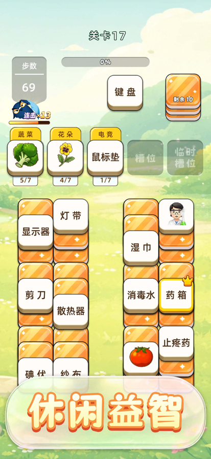 欢迎来到一个充满奇思妙想的分类世界!在这里,你需要敏锐的眼光和清晰的逻辑,将各种看似杂乱的卡片整理得井井有条。 准备好迎接一场脑力与眼力的双重挑战了吗? 【操作简单,上手轻松】 • 轻点一下,将代表着特定分类的卡片放置到上方的收集槽中。 • 随后,根据主题提示,在下方找到所有属于该分类的卡片,将它们一一收集归位。 【益智有趣,挑战升级】 • 每一步操作都至关重要,你必须在限定的步数内完成所有卡片的整理,这非常考验你的策略与规划能力。 • 主题内容包罗万象,从美食佳肴、可爱动物到省份地理、四大发明,海量关卡不断给你带来新的知识和惊喜。 • 遇到困难时,别忘了使用提示或临时存放等实用功能,它们能帮你理清思路,顺利前进。 这不仅是一场令人舒适满足的整理收纳体验,更是一次轻松有趣的思维训练。快来开始整理你的小世界,享受把一切变得井然有序的乐趣吧!