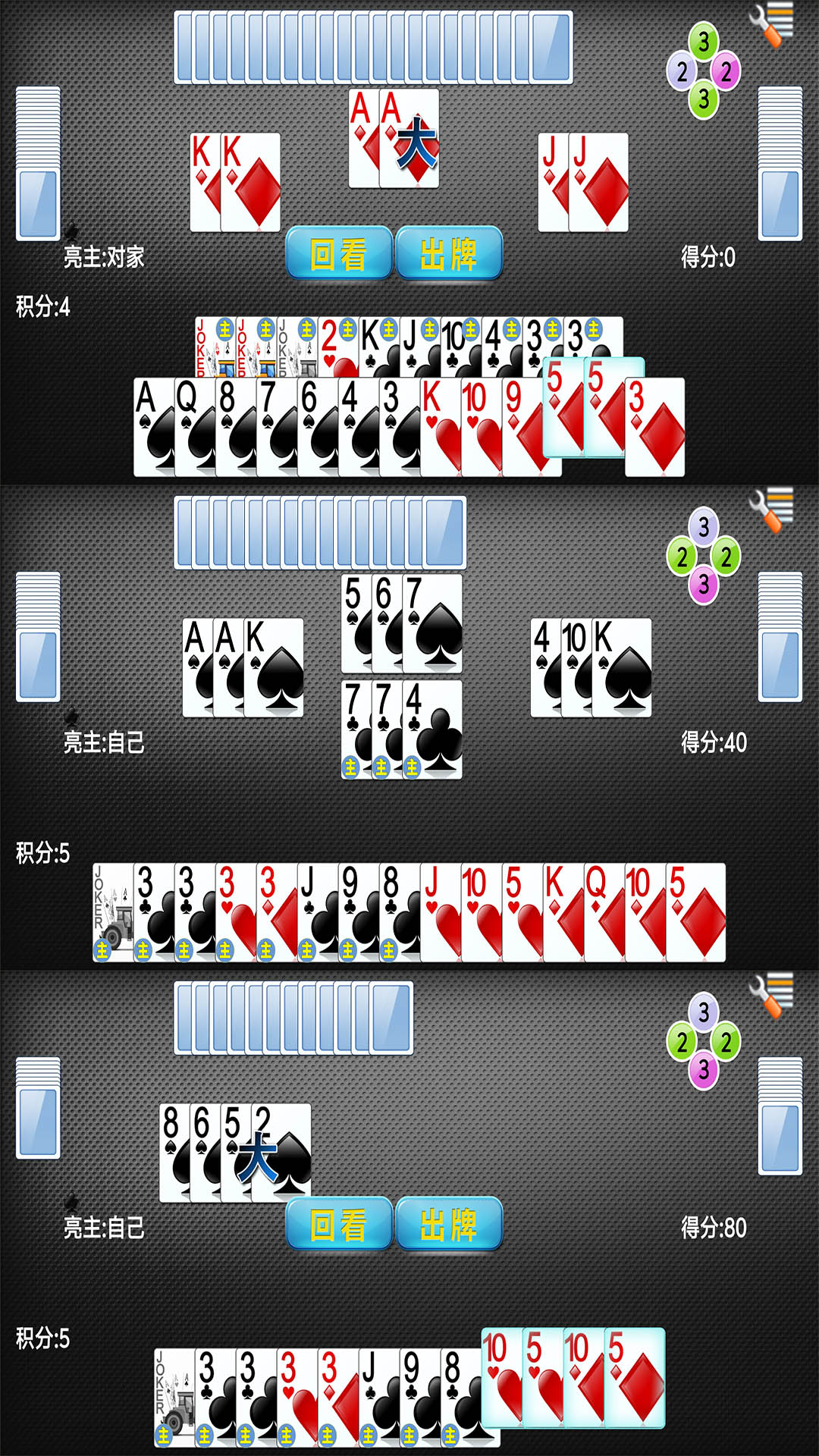 升级双升80分棋牌游戏,欢乐竞技天天嗨 拖拉机升级80分,也叫升级、80分、双升,采用抢分升级经典棋牌游戏模式。拖拉机游戏不仅有经典的拖拉机升级80分的玩法,还加入了炒地皮、五主过河等新玩法,是非常好玩的拖拉机升级80分游戏! 拖拉机,又称为“升级”,“炒地皮”,“双升”等,是一款风靡全国的经典扑克牌游戏。牌局采用四人组队抢分升级的游戏模式,超炫酷的动画搭配刺激炒底的玩法,让你玩到停不下来!清新的视觉体验,欢快的背景音乐,百万真人实时对战,可以在这里尽情享受您的欢乐之旅。 --------------------游戏特色----------------------- 【玩法丰富】升级80分,欢乐炒底,超多玩法任您来玩 【天天好礼】签到送币,新手福利,超多奖励领到手软 【秒速开局】无需注册,登录即玩,万人在线畅快对战 【精美画面】华丽特效,丰富表情,视觉效果耳目一新