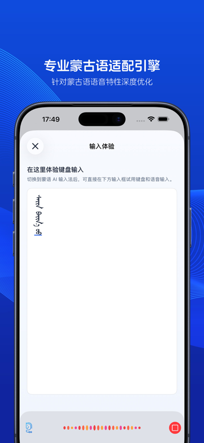 蒙语AI输入法是一款面向蒙古语用户的智能语音输入应用,支持标准蒙古语、传统蒙古文及多种方言识别。 借助先进 AI 技术,用户只需开口说话,即可将语音快速转换为文字,减少手动输入,提高沟通与记录效率。 无论是日常聊天、工作记录、学习笔记,还是会议纪要、灵感速记,蒙语AI输入法都能带来更加自然、快捷的输入体验。 功能特色: - 支持蒙古语语音转文字 - 支持标准蒙古语识别 - 支持传统蒙古文输入 - AI 驱动的高精度语音识别 - 适用于聊天、学习、办公、记录等多种场景 - 降低手动输入成本,让输入更轻松 如果你正在寻找一款真正适合蒙古语用户使用的智能输入工具,蒙语AI输入法将为你带来更高效、更自然的输入方式。