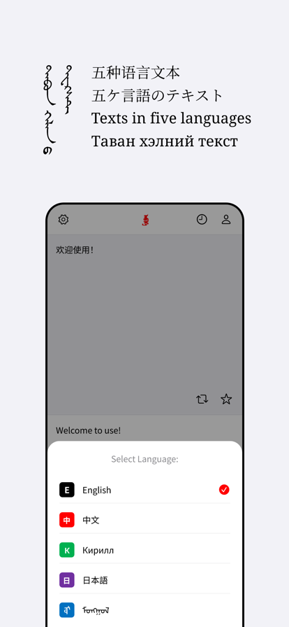 Abiya Translator is an intelligent translation app that supports mutual translation among five languages: Mongolian, Cyrillic, Japanese, English, and Chinese. It offers users high-accuracy translation services, suitable for various cross-language communication scenarios. Below are the app’s main features and highlights: 1. Multilingual Support: Abiya Translator supports text translation among Mongolian, Cyrillic, Japanese, English, and Chinese, meeting multilingual communication needs in contexts such as study, work, and travel. 2. High-Accuracy Text Translation: The app uses advanced machine learning technologies to ensure accurate and fluent translations, helping users overcome language barriers and communicate smoothly. 3. Favorites Function: Users can save frequently used or important translations to a favorites folder for quick access and reuse, improving efficiency in work and study. 4. Translation History: Abiya Translator automatically saves all translation history, allowing users to review and manage previous translations at any time and avoid repeated input. 5. Phrasebook: The app includes a rich built-in phrasebook covering various scenarios such as daily communication, travel, and business negotiation, helping users quickly find appropriate expressions. 6. User-Friendly Interface: The app features a clean and intuitive interface that is easy to use for both beginners and professionals, providing a smooth and convenient translation experience. 7. Future Feature Expansion: In upcoming updates, Abiya Translator plans to add voice and image translation features to further enhance usability and meet users’ diverse translation needs. Abiya Translator is committed to providing professional, efficient, and convenient translation services. It is your ideal assistant for cross-language communication—whether in everyday life, academic research, or international business, Abiya Translator empowers you to confidently handle multilingual challenges. Abiya Translator 是一款智能翻译应用,支持蒙古语、西里尔字母、日语、英语和中文五种语言之间的互译。它为用户提供高精度的翻译服务,适用于各种跨语言沟通场景。以下是该应用的主要功能和亮点: 1. 多语言支持:Abiya Translator 支持蒙古语、西里尔蒙古语、日语、英语和中文之间的文本翻译,满足学习、工作和旅行等场景下的多语言沟通需求。 2. 高精度文本翻译:该应用采用先进的机器学习技术,确保翻译准确流畅,帮助用户克服语言障碍,顺畅沟通。 3. 收藏功能:用户可以将常用或重要的翻译保存到收藏夹,以便快速访问和重复使用,提高工作和学习效率。 4. 翻译历史记录:Abiya Translator 会自动保存所有翻译历史记录,方便用户随时查看和管理之前的翻译,避免重复输入。 5. 短语手册:该应用内置丰富的短语手册,涵盖日常沟通、旅行、商务谈判等各种场景,帮助用户快速找到合适的表达方式。 6. 用户友好界面:该应用拥有简洁直观的界面,无论是新手还是专业人士都能轻松上手,提供流畅便捷的翻译体验。 7. 未来功能扩展:在未来的更新中,Abiya Translator 计划添加语音和图像翻译功能,进一步提升用户体验,满足用户多样化的翻译需求。 Abiya Translator 致力于提供专业、高效、便捷的翻译服务。它是您跨语言沟通的理想助手——无论是在日常生活中、学术研究中还是国际商务中,Abiya Translator 都能助您自信应对多语言挑战。