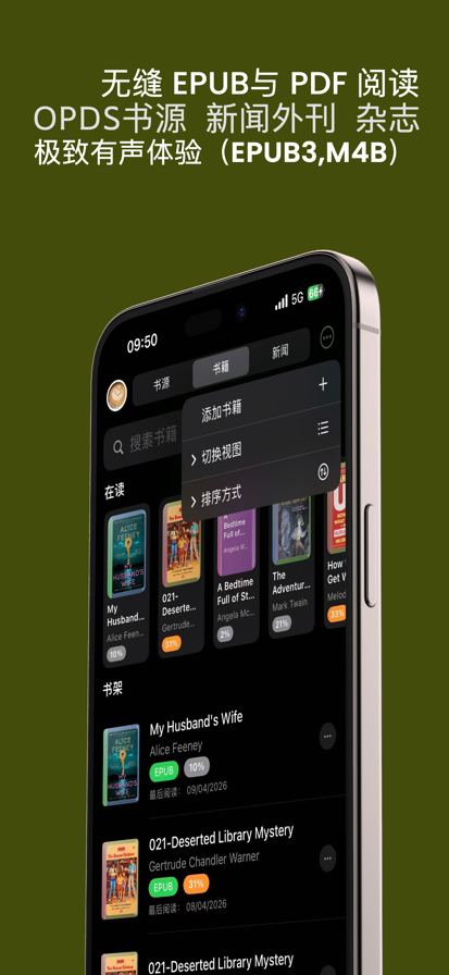 【核心特色功能】 【有声书深度学习】 【独家字幕生成】:首次支持为 m4b/Audible 有声书 自动生成同步字幕,数百万 Audible 资源从此可“看”可“学”。 【真人朗读电子书】:支持 epub3 真人朗读书籍(非机械TTS),边看边听,声文同步。 【PDF 有声绘本】:点击 PDF 绘本内文字,即可播放对应音频,实现互动点读。 【智能阅读与查询】 【高效查词句】:单击查单词,长按查整句。集成 Kindle Word Wise 相似功能,大幅降低查词成本。 【AI 即时老师】:随时选中文本,AI 即可解答语法、语境、句子结构等疑问,像老师一样随行。 【单词分级高亮】:根据词汇难度自动颜色标注,重点生词一目了然。 【多模式沉浸体验】 【多种阅读模式】:包括 ADHD 仿生阅读、电影式滚动、沉浸式聚焦、背景音乐阅读、影子跟读等,适应不同场景。 【耳语式听书】:支持离线听书,可添加环境白噪音,打造舒适聆听体验。 【 全平台资源接入】 直接学习 YouTube、B 站、Apple Podcasts 等平台视频与音频。 支持 OPDS 书源,轻松订阅新闻、外刊、杂志。 可通过 WebDAV、网盘 导入个人资源,支持多设备实时同步。 多语言与自定义 支持 全球 60+ 种语言 学习,包括德、法、意、西等小语种。 可导入任意MDX词典,使用你熟悉的词典。 支持 自定义 AI 大模型,让问答更符合你的需求。 【学习管理与统计】 阅读前可预习生词,阅读中自动记录。 详细阅读数据统计,帮你追踪学习进度与成效。 为什么选择我们? All in One:一个应用,整合听书、阅读、视频学习、生词管理、AI 问答、资源同步。 持续进化:功能不断更新,更多惊喜持续上线中。 欢迎下载体验 开启你的高效、沉浸、个性化语言学习与阅读之旅。