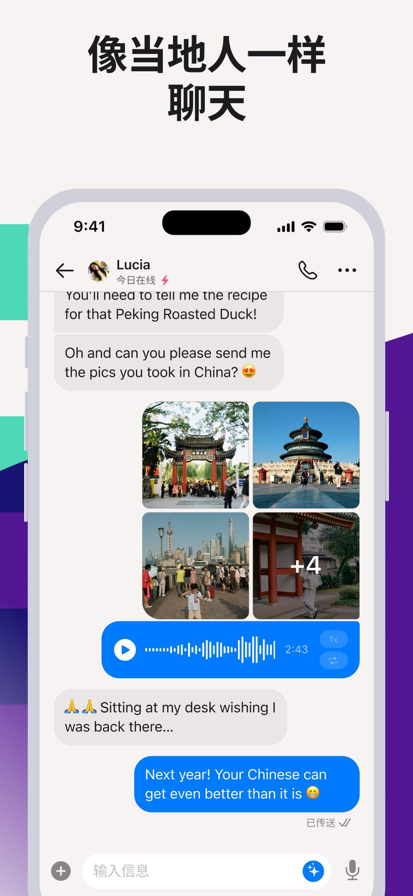 学外语练口语!HelloTalk是专为语言交换打造的全球化语言学习社区。在这里,你可以与来自260多种语言的母语者进行一对一的聊天互动,包括英语、日语、韩语、德语、法语、意大利语、西班牙语、葡萄牙语、阿拉伯语、泰语、越南语、俄语等等,也可以加入外语语聊房畅所欲言,在线连麦海外主播。HelloTalk创造了一个真实的语言学习环境,既能沉浸式的氛围中学习地道的口语表达,又能交到志同道合的外国朋友。 HelloTalk到底有多好用? ► 与母语者自由畅聊 不论是主流语种,还是小众语种,不管你是备考四六级、研究生、托福雅思、出国留学的学生党,还是外企,外贸,想通过流利的外语达到职场晋升的上班族,在HelloTalk上都能找到符合你要求的语伴! 系统根据你的母语和语言水平进行智能匹配,还能通过年龄、地域、性别等多维度筛选理想语伴。通过自带的翻译、音译等工具,无障碍表达更自信! ► 沉浸式多人语聊房 如果你选择的是学英语,那你看到的每个语聊房里,都汇集了世界各地学英语的伙伴们以及英语母语者们,一起讨论有意思的话题。这里只需要展示声音,对于社恐达人十分友好。大家因兴趣相聚,可以自由的表达自己,分享生活。在培养语感的同时,学习地道语言表达技巧。实测真的会上瘾! ► 多元化的外语直播 HelloTalk精选外语主播在线视频教学、分享语言知识和他们的海外生活。你不妨尝试上台,和外国友人一对一视频对话,发音不标准、慢速、胆怯都没有关系,主播们会帮助你,纠正你的发音,梳理你的思路。要快速提升口语,一定要多开口,和外国人直接对话! ► 国际化的朋友圈 HelloTalk刷不到底的信息流,汇集了千万条有关学习、生活、文化的实时贴文,让你发现世界各地的新鲜事,深入了解各国文化习俗,在家就能看世界!要记得多给有趣的贴文点点赞哦。 ► 丰富的语言课程 HelloTalk 还根据不同语言能力,量身打造专属课程,由经验丰富的母语老师授课,针对你的语言学习弱点提供专业帮助,协助你更好提升外语。 语言学习不再枯燥乏味。HelloTalk是学习和乐趣并存的地方,现在加入我们还不晚!开启你的语言学习新篇章,体验与世界零距离的交流,现在就来HelloTalk吧!和英语、日语、韩语、德语、法语、意大利语、西班牙语、葡萄牙语、阿拉伯语、泰语、越南语、俄语等等的外国人在线交流! 追求更极致的学习体验?试试HelloTalk VIP吧! -- 享受无限翻译次数,直播间实时字幕 -- 无限制的直播间/语聊房收听时长 -- 每日更多认识新朋友机会,个性化筛选语伴 -- 解锁访客和附近的人特权,拓宽交友圈 -- 可同时学习多达三门不同语言 确认购买后,付款将从您的 iTunes 帐户中扣除; 订阅服务会自动续订,除非你在当前订阅期结束前至少24小时取消续订; 续订费用将在当前订阅期结束前24小时内从您的账户中收取; 你可以在App Store的账户管理中管理您的订阅和关闭自动续订; 免费试用期内任何尚未使用的部分将被终止。 - 隐私政策: https://www.hellotalk.cn/privacy-policy - 用户条款: https://www.hellotalk.cn/terms-of-service