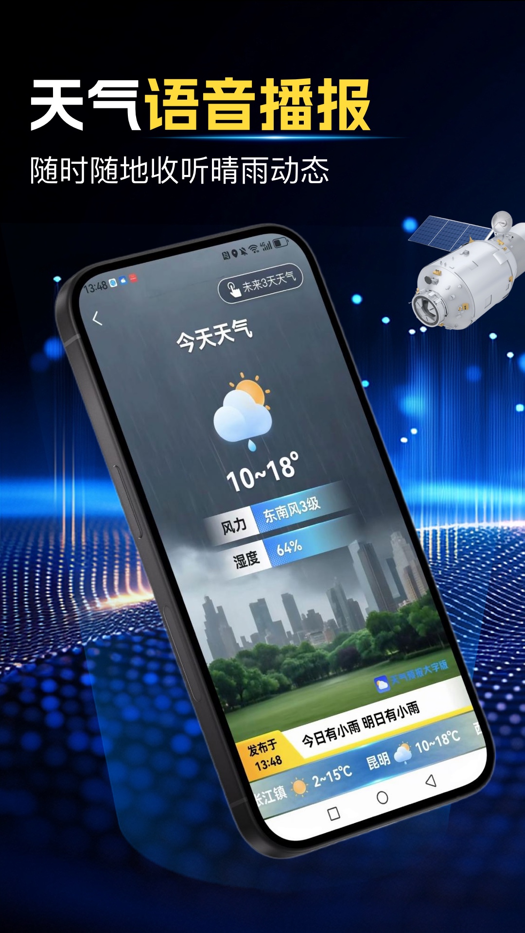 天气通是一款致力于为用户提供精准、可靠天气信息的专业应用。作为4亿用户的贴身天气管家,我们采用多个权威机构数据,提供超长的天气预报和实时天气信息,以便您更好地规划行程和生活。除此之外,我们还提供多种特色功能,例如可视化天气雷达图、动态台风路径以及丰富天气语音&壁纸资源等,方便您随时掌握当地天气情况~ <br> <br>【天气信息早知道】 <br>- 综合天气雷达图:3/48小时动态未来降水预报,精准到分钟级别;涵盖大风、潮汐、能见度、过敏、湿度、空气污染等多种场景。 <br>- 逐小时精细预报:可视化展示24/360小时级天气数据,风云变幻一目了然。 <br>- 超长多日预报:查看40日天气日历、未来降温降雨趋势曲线图,提前掌握天气信息,为出行早做计划。 <br>- 天气预警提醒:实时天气预警信息及时推送,采用气象部门授权数据,精准涵盖市县区街道。 <br>- 动态台风路径:紧密跟踪台风移动路径,预测未来走向,便于周边地区提前做好台风防护。 <br> <br>【空污指数全掌握】 <br>- 空气质量:全方位涵盖3454个县市级空气质量预报,并可查看15日空气质量趋势,防“霾”于未然。 <br>- 空气显微镜:六大空气污染物指数详细呈现,污染等级程度一目了然。 <br>- 360小时级空污预报:长达15天小时级空气污染指数变化一图知晓。 <br> <br>【特色功能趣味多】 <br>- 人气语音:特色天气语音播报功能,上百位人气天气官为你报天气。 <br>- 高清背景:动态壁纸、精致海报、迷人风景,总有一款吸引你。 <br>- 天气实景:查看附近地点实时景色,夏春秋冬各路美景,一览无余。 <br>- 景区天气:700多个景区天气预报,为你的出行游玩早做准备。 <br>- 生活指数:穿衣带伞出行建议、限行防晒温馨提示、为有车一族提供洗车参考,为抵抗力薄弱人群提供过敏感冒易发程度提醒。
