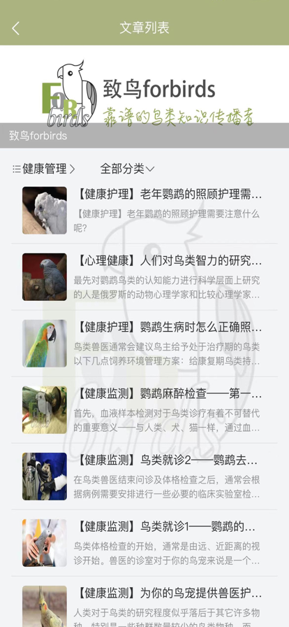 致鸟forbirds鸟类健康管家,旨在提供科学的鸟类饲育理念帮助鸟类宠物主人更好地饲育鸟类宠物——搭载鸟类智能体重评估系统,记录鸟宠体重并提供体重曲线和辅助异常体重提示;丰富的数据库支撑:多物种鹦鹉体重数据、1600+鹦鹉有毒/安全的植物和食物数据、鸟类疾病数据库,提供充足的理论支撑;结合当今鸟类医学研究发展的鸟类疾病评估系统,让你更好地判断鸟宠的健康状况……