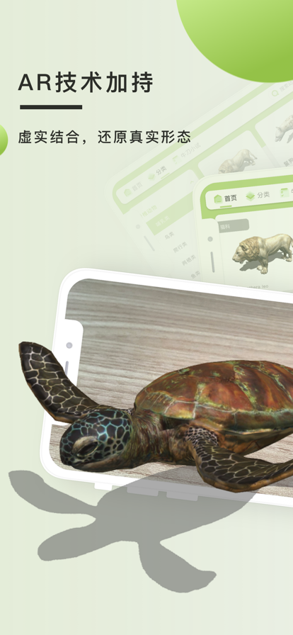 1、庞大的模型数据库,多种高精度动物三维模型,目前模型库持续更新中,一次付款享受永久数据库升级。 当前版本动物如下: 脊椎动物: 哺乳类:狮子、鬣狗、美洲豹、水牛、老虎、长颈鹿、野兔、斑马、虎鲸、亚洲象、双峰驼、白鲸、北美驯鹿、羚羊、海豚、土拨鼠、绵羊、大熊猫、座头鲸、河马、蝙蝠、麝牛、山羊、家猪、野猪、疣猪、犀牛、家马、家牛、大猩猩、蓝鲸、抹香鲸 鸟类:雕、家鸡、秃鹫、鹤 爬行类:棱皮龟、短吻鳄、蜥蜴、海龟、蟒蛇 两栖类:青蛙、蝾螈 鱼类:大白鲨、鲈鱼、石斑鱼、梭子鱼、沙丁鱼、鲸鲨、鲤鱼、金枪鱼、小丑鱼、翻车鱼、安康鱼、海马 无脊椎动物: 节肢动物:蝎子、蜘蛛、蜈蚣 赖皮动物:海参、海星、海胆 软体动物:章鱼、巨蛤、蜗牛 环节动物、腔肠动物、扁形动物、线形动物、原生动物 2、相比传统的动物图片,仿真动物可以360度认知学习,能让我们身临其境更真实更有效的进行辨别。 3、动物按照科目进行了介绍,还原动物本身的形态动作,生动形象,栩栩如真,极大方便了我们对动物的认知和学习,更快形成持久性记忆。 4、平台还有对应的试题库,我们可以牛刀小试,随机题库进行训练,让我们巩固记忆,练就动物爱好者。 5、官方QQ群709504492,技术人员会提供答疑和支持,欢迎各位恐龙爱好者加入,提出宝贵建议,一起打造独一无二的3D动物图鉴吧~ 6、更多内容更新信息可关注微信公众号“光迅数字” 7、备注:APP需要联网使用。APP无任何广告。