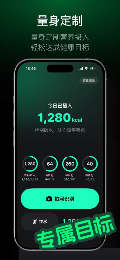 「餐前随手拍,记录每一口的热量与营养」 不想手动查表、不想记复杂数字?识餐帮你把"吃什么、吃多少"变成一件很直观的事。 只需拍一张食物或营养成分表的照片,AI 即可自动识别食物名称、估算分量,并给出热量和营养分析,帮你更轻松地管理饮食与体重。 主要功能 AI拍照识别食物与营养 对准食物或包装成分表拍照,自动识别是否为食物,估算重量,并给出每份热量、蛋白质、碳水和脂肪等营养信息。 一目了然的热量与营养概览 根据每日目标,直观展示你当天摄入的热量、蛋白质、碳水和脂肪占比,帮你判断"今天吃得多不多、够不够",并跟随当前状态给出饮食建议。 饮食记录与历史趋势 将每一次识别结果一键保存为饮食记录,自动汇总近7日热量变化和营养结构,让长期趋势一眼可见。 个性化每日目标 通过简单的表单填写基础信息和目标(减脂 / 增肌 / 维持体重),智能估算每日建议摄入,让记录更有参照意义。 饮水打卡,养成好习惯 记录每日饮水量,搭配饮食管理,让你的健康习惯更完整。 适合哪些人? 想要减脂/保持体重,但不想每天算卡路里的人 经常外食,希望快速了解食物大致热量和营养结构的人 注重饮食健康、想调整营养比例的人 习惯用相机记录生活、顺便想记录饮食的人 隐私与数据说明 本应用当前不要求注册账号,饮食记录和个人基础信息仅存储在你的设备本地。当你发起识别时,图片会经过压缩后发送至第三方 AI 服务完成分析,我们不会在自有服务器中长期保存你的图片。 「识餐」希望帮你用更轻松的方式,慢慢见到理想状态。 从今天开始,用一张照片,记录每一餐的选择。 订阅说明 识餐 Pro 提供以下订阅选项: - 月度订阅:¥18/月 - 年度订阅:¥68/年 - 永久买断:¥98 一次性购买 订阅确认后,费用将从您的 Apple ID 账户扣除。订阅会自动续期,除非在当前订阅期结束前至少24小时取消。您可以在 App Store 账户设置中管理或取消订阅。 服务条款:https://www.apple.com/legal/internet-services/itunes/dev/stdeula/ 隐私政策:https://ai.feishu.cn/wiki/NyTlwiYBaiybmxkEoWkcwo9Hn5c