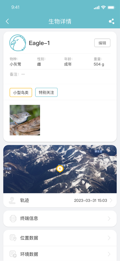 应用介绍: 用于远程控制DEBUT智能终端、展示野生动物所处环境数据和行为数据,适用于为科研机构、监管部门和公益组织进行濒危生物保护、生态研究修复、生物多样性维持和公众教育。 特色功能: 扫码开启设备:通过扫描设备的二维码开启设备。 远程管理设备:远程设置设备配置以改变设备工作模式。 查看采集数据:查看设备所处的环境数据(如:GPS位置)和被追踪生物的行为数据。 创建电子围栏:在地图上划定虚拟的围栏监控设备进出。