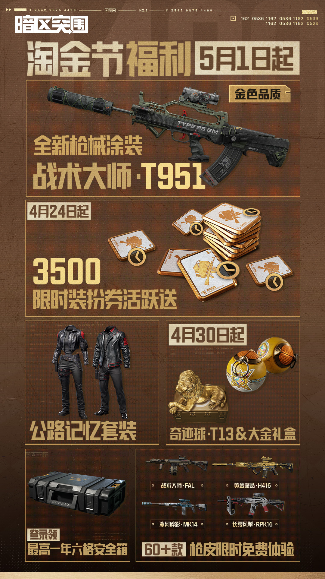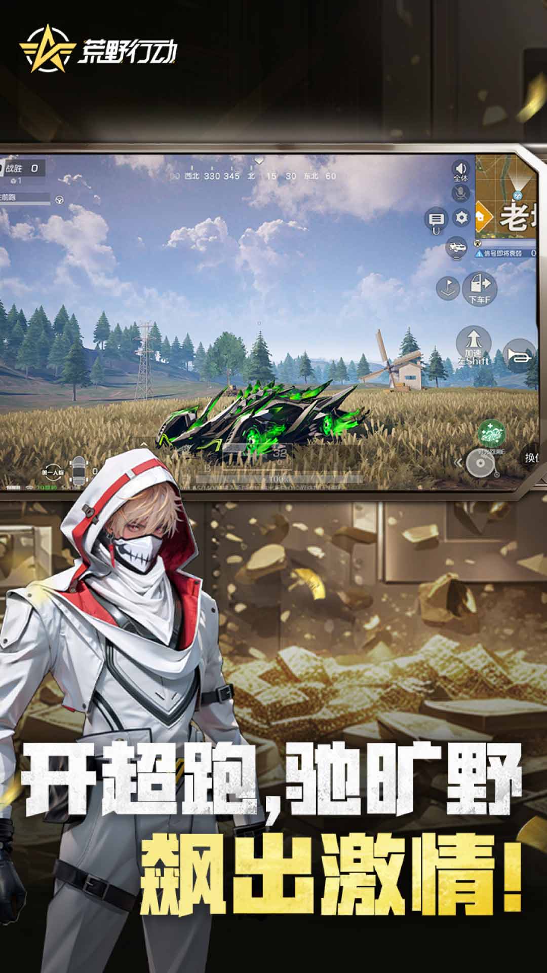 7周年福利重磅来袭!史无前例送金车!<br>金车、金枪、金装全套安排,邀请好友必得金车,安排!<br>全新大口径枪械SACR-H登录荒野!来感受全新的火力压制!<br>想知道在空舰上刚枪是什么感觉吗?全新周年庆玩法【空舰激战】正式上线!<br>荒野新生,“金”喜突围,10月26日等你来上线体验!<br><br>【起飞!目之所及皆可抵达】<br>百人超大地图,跃入荒野世界里自由探索属于你的求生之路<br><br>【生存路上 与同好不期而遇】<br>玩得开心,聊得更开心<br><br>【最深的友情 是一起活下去】<br>与知心好友在荒野默契配合,共享战斗快感<br><br>【超酷跑车 带上队友一起飙】<br>开启全队的极致速度<br><br>【用个性穿搭 遇见特别的人】<br>潮流单品风格多变,随心搭配