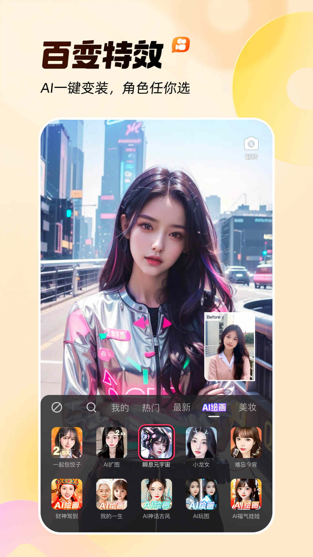 美颜相机,拍人像更出片!年轻人都在用的潮流相机App! — 硬控人像摄影潮流 — 【苹果模式】拯救原相机锐化瑕疵,高清真实还原美貌,白天晚上都出片! 【微单模式】手机爆改微单,支持景深虚化,旅游出行必备神器,普通人也能拍出高质量大片! 【原生模式】生图直出秘诀,不假面不吃妆,高清质感立马拿捏。 【潮流大头贴】电子大头贴机,单格到九格都能拍,还能打印送到家,仪式感满满。 【复古胶片机】火爆各圈的CCD型号,带你梦回千禧年代,拍出满满胶片感~ 【更多模式】还有帮拍模式、合照模式、男生模式等多种拍照模式,满足你不同场景的拍照需求! — AI人像大师更专业 — 【AI人像精修】一键减肥、一键增肌、去双下巴、AI表情、AI换背景、AI路人消除、AI一键美颜、AI头发等,告别繁琐,一键出片! 【AI写真】AI生成场景妆造,一键生成我的写真!更有博主同款写真、儿童写真、情侣闺蜜写真、全家福、卡通分身等多种主题,轻松实现写真自由! 【AI玩法】AI绘画、AI动漫、AI照片跳舞等多种玩法,一键进入次元世界! — 更懂年轻人的自拍流行 — 【医美级美颜参数】水光肌、除皱、3D隆鼻、去颈纹、下颌线、