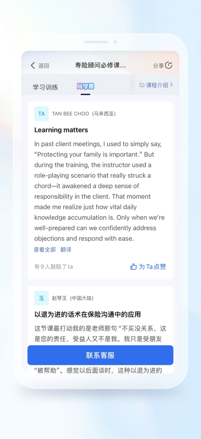 「IDA高研院」致力于打造面向世界华人保险从业者的终身学习平台,以全球保险精英的实战分享,帮助从业者不断精进专业能力与综合素养,进而让行销更有方法,让展业更见成效。 【行销有方法,展业有成效】 1.「IDA高研讲坛」——实战案例借鉴 顶尖保险精英分享实战案例与心得 在成功经验里收获思路借鉴 2.「学习专题」——提升专业能力 每周更新2个专题学习包 行销智慧、展业技巧、团队经营、增员有道 融汇全球保险精英的深度主题分享 3.「你问,精英答」——解决展业难题 一分钟一个知识点 顶尖保险精英为你解答展业难题 4.「高研新知」——拓宽认知思维 保险从业者的创新知识来源 从跨界思考中找到展业新思路 5.「主题书单」——提供成长养分 每周推荐一个主题书单 系统化吸收行业前辈宝贵经验 6.「智能名片」——打造个人品牌 全面升级专业形象,让你脱颖而出 国际荣誉官方认证,让你的专业一眼可见 开启数字化营销,让你一键高效获客 7.「展业工具」——提升展业效率 知识日历、签名海报、展业贺卡、随手发等 一系列展业工具,助你展业更轻松、更有效 【多元式学习主题,多样式学习场景】 1. 丰富的学习主题,为你全面提升保险专业能力和成长认知; 2. 音频、视频、书籍等多种学习形式,通勤路上、睡前、跑步、家务时间都可随时随地开启学习 【联系我们】 微信公众号:IDA高研院 客服微信号:IDA199801