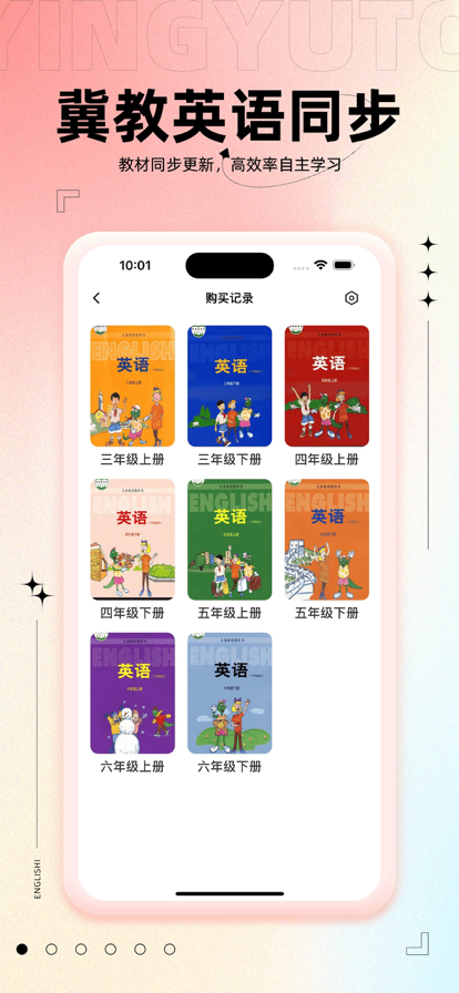冀教版小学英语是一款专注5-12岁小学生课后学习工具。 此App针对儿童设计的互动体验,让学生更轻松掌握小学英语学习内容。 【高音质】 高音质、高清晰度,让孩子更好的跟读。 【界面简洁】 打开即是课本,点一下就开始学习,滑动翻页,兼容iPhone、iPad。 【点读功能】 哪里不会点哪里,多次点击多次听读。 【语速调整】 根据孩子的学习阶段可以将语速调整为:正常、稍慢、很慢。 【跟读功能】 自由设置句子和句子之间的播放间隔,可以让孩子更好的跟读 【多种播放模式】 读一句、读一页、读一单元都可以,支持锁屏播放 【全书MP3免费】 全书高音质mp3免费收听,没有广告,支持锁屏播放 【中文翻译】 支持显示中文翻译,默认关闭显示,可在设置中打开 【恢复解锁】 如遇到内购后消失的问题,请在APP内点击“恢复购买”