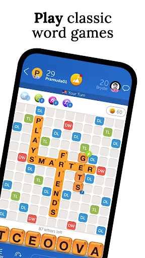我们的多人文字游戏比以往任何时候都更精彩、更智能!在 Words With Friends 中,通过解读字母,挑战字谜游戏,训练你的大脑,并沉迷于众多经典的文字游戏和填字游戏!在我们备受喜爱的经典文字游戏中寻找得分最高的单词,扩大你的词汇量,炫耀你的拼写技能。免费下载成人文字游戏。<br><br>创建游戏<br><br>► 多人桌游对决从这里开始。继续你的大脑训练,挑战你热爱经典填字游戏的亲朋好友,或者使用智能匹配找到你的理想对手。解读字母,在棋盘上寻找得分最高的单词,完成经典的填字游戏!在这款经典游戏中,证明你拥有成为文字之王或文字女王的实力。<br><br>完成单词目标,赢取奖励<br><br>► 在这款经典的单词游戏中,用你最擅长的单词牌完成目标,赢取钥匙,并通过奖励通行证解锁独家收藏品!每 6 周更新一个新主题,总有新鲜刺激的东西等你来收集!在这些经典的单词游戏中,攀登奖励轨道,完成单词搜寻,并在这款脑筋急转弯游戏中考验你的拼写技巧,收集所有奖励!<br><br>在单人挑战中提升你的单词游戏水平<br><br>► 你可以与主题单词大师一起玩脑筋急转弯,挑战单词拼图,无需多人游戏模式。在这款经典的单词搜索游戏中保持敏锐,因为随着你等级的提升,单词大师会变得越来越难对付。<br><br>用单词轮盘换换口味<br><br>► 你喜欢单词桌游吗?字谜游戏让你脑筋急转弯吗?那么这款免费的安卓单词应用就是你的理想之选!在这款简单易玩、限时字谜小游戏中,挑战你的大脑,解开这些字母谜题,提高你的拼写技巧,寻找正确的单词。这款文字应用种类繁多,总有一款适合每个人!<br><br>定制你的文字风格<br><br>► 在这款经典的免费填字游戏中,你可以展现你的字母游戏和填字游戏风格,并通过贴纸、方块风格和头像框来玩转文字!<br><br>---<br><br>Words With Friends 是一款免费的文字知识类棋盘游戏,但如果你之前购买过 Words With Friends Pro 或在任何移动设备上购买过原版 Words With Friends 文字棋盘游戏中的第三方广告,那么你可以在每轮游戏中免除第三方广告。<br><br>请务必使用你之前购买时使用的 Facebook 或邮箱账户登录,以便在每轮游戏中免除第三方广告。<br><br>你是填字游戏、多人棋盘游戏和文字游戏的爱好者吗?在 Facebook 上点赞或在 Twitter 上关注我们,即可随时了解桌游资讯、比赛、投票和其他精彩内容。<br><br>https://www.facebook.com/WordsWithFriends<br><br>https://twitter.com/WordsWFriends<br><br>https://instagram.com/wordswithfriends<br><br>https://youtube.com/wordswithfriends<br><br>在这款最有趣、最经典的手机游戏中,提升您的桌游体验!立即下载 Words With Friends!<br><br>想要更多玩法?访问 Words With Friends 网页版:http://www.wordswithfriends.com/<br><br>本应用程序的使用受 Zynga 服务条款的约束,该条款可在 https://www.take2games.com/legal 上找到。<br><br>有关 Zynga 如何使用个人数据的信息,请阅读我们的隐私政策,网址为 https://www.take2games.com/privacy