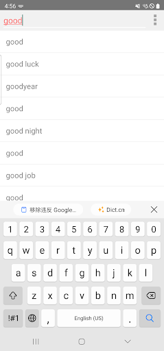 快词英汉词典是一个简单好用的在线英汉词典、汉英词典,是英语学习和阅读的好帮手。<br> * 词组、短语查找。<br> * 单词发音。<br> * 相关词、同义词、反义词,以及例句中大多数的词已经链接,轻按一下就能查找该词。<br> * 浏览器模式的查找历史,可以轻松前进,后退。<br> * 按时间和字母顺序排列的详细查找历史,便于复习。<br> * 在外存/SD卡上保存查找历史,以便备份或转移到新手机。需要“修改或删除您的 SD 卡中的内容”权限。<br><br>用法:<br> * 在其它应用中选择要查找的单词,然后“分享”给快词查找。<br> * 在其它应用中“剪切”或“拷贝”单词,然后打开快词,快词将自动查找该单词。<br> * 在快词中直接输入单词查找。<br> * 一触式连续查找相关词、同义词、反义词,以及例句中链接的词;或者,<br> * 选择未链接的词,然后在屏幕顶端的菜单上按“查找”。<br><br><br>Fast, no-frills English-Chinese and Chinese-English online dictionary.<br> * Supports lookup of English phrases.<br> * Voice pronunciations.<br> * Related words, synonyms, antonyms, and most words in the examples are live links. Simply tap on them to look them up.<br> * Browser-style lookup history lets you go back and forth with ease.<br> * Full lookup history is available in chronological or alphabetical order for easy review.<br> * Save lookup history to external storage/SD card for easy backup and migration to new phone. Requires permission to "modify or delete the contents of your SD card".<br><br>Usage:<br> * Select a word in another app and "Share" to Quictionary for instant look up.<br> * Cut/copied a word in another app and open Quictionary for automatic look up.<br> * Open Quictionary and enter a word to look it up.<br> * Look up linked words in Quictionary with just one tap; or<br> * Select any word and tap "Look Up" on the action bar on the top of the screen.