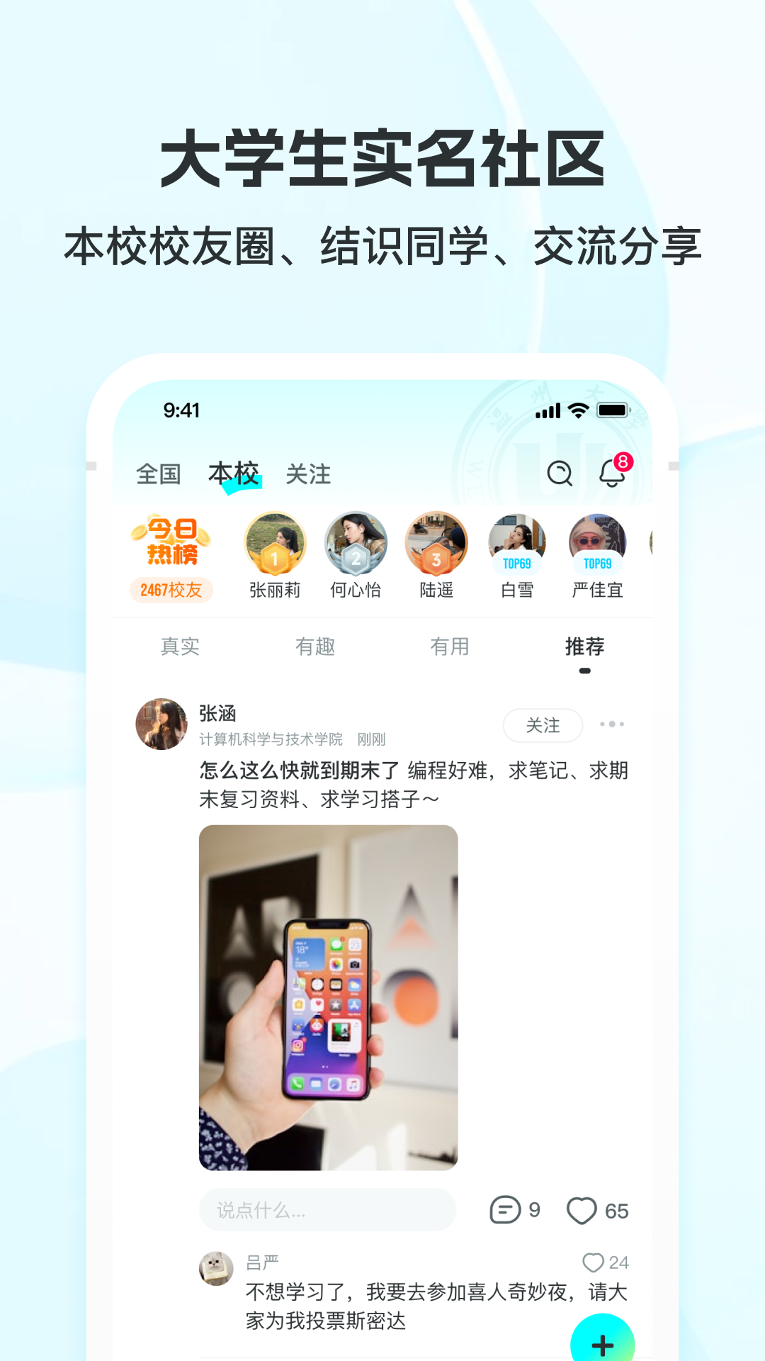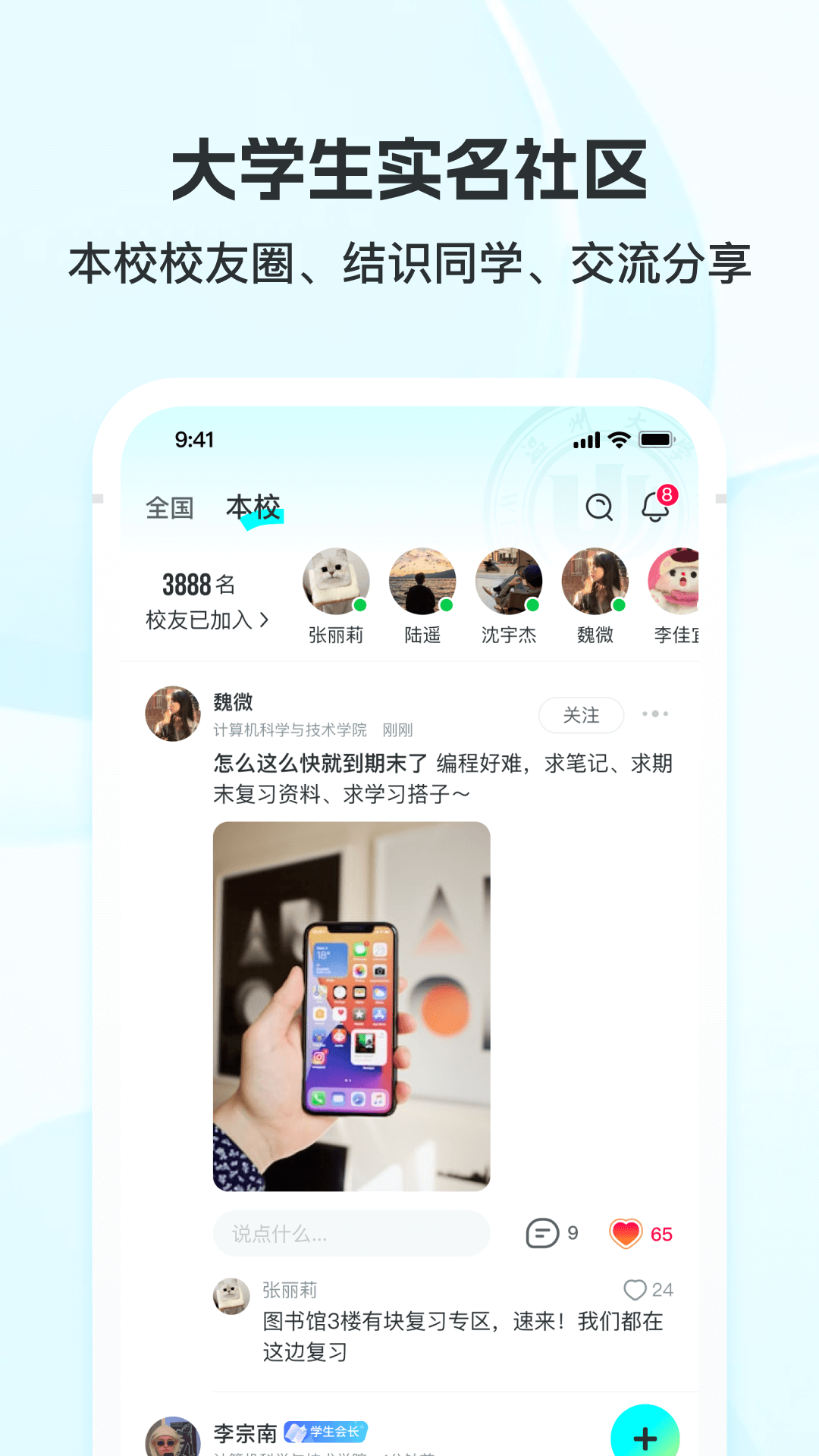 大学通——智慧校园生态服务平台<br>以「娱乐社区」「校园跑腿」为核心,打造新世代校园多功能智慧平台<br>海量社区内容供你看,发帖留言互动,分享热爱,玩转社区<br>抢单赚零花:实名认证学生骑手,空闲时间轻松变现,月均增收800+<br><br>【核心功能|社区】<br>● 游戏、影视、动漫、穿搭、找到你的组织<br>● 热门话题实时更新,全网爆梗一网打尽<br>● 刷梗、吐槽,边看视频边聊天,结实好友<br><br>【核心功能|校园配送】<br>√ 学生互助网络<br>● 自由发布任务:代取外卖/跨校送资料,5分钟极速响应。<br>● 抢单赚零花:实名认证学生骑手,空闲时间轻松变现,月均增收800+<br><br>【核心功能|闲置交易】<br>海量精品闲置物品随时交易下单
