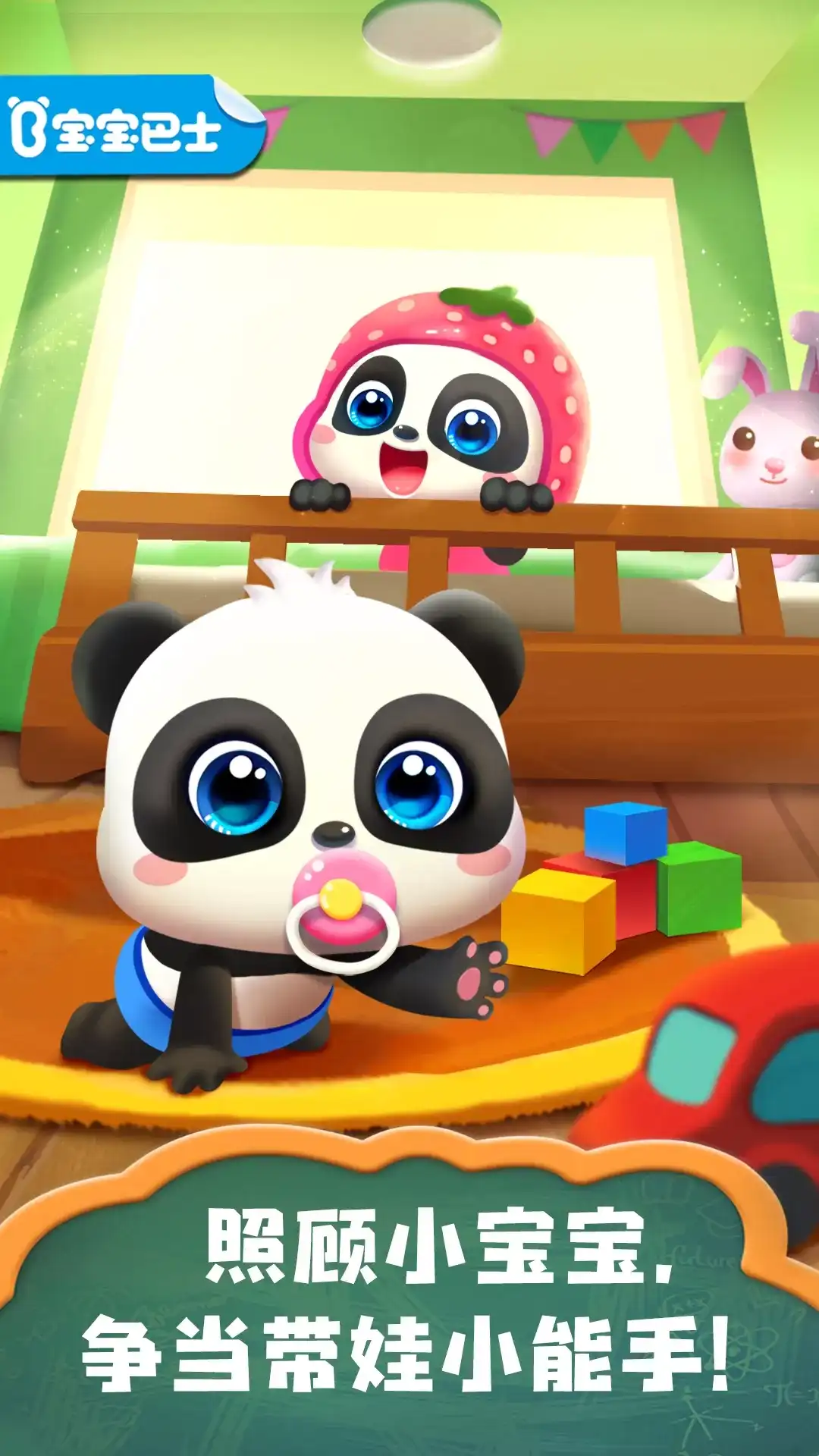 照顾小宝宝,是什么样的体验?让【照顾小宝宝】App告诉宝宝! 在儿童益智App【照顾小宝宝】中,宝宝将变身“小大人”,体验一回照顾小宝宝的日常:陪伴小宝宝玩耍、尝试哄睡小宝宝……多种“带娃”益智互动,考验着宝宝的动手力、反应力等多项能力! 宝宝们,想成为会照顾小宝宝的可靠姐姐or哥哥吗?快打开App掌握“带娃”笔记吧! 【制作果蔬饼,考验动手能力】 小宝宝爱吃的食物,该如何制作?展现动手能力的时间到!先将土豆、紫薯捣成泥,装入裱花袋;再用裱花枪,将蔬菜泥挤成小份,装入小宝宝的餐盘。哇,蔬菜泥看起来美观又美味! 宝宝再来制作一份水果酱饼吧。把果块装入手动搅碎机,拖动拉绳:一下、两下……水果酱完成。接着把它倒入模具,再用勺子轻轻压实,水果酱饼就做好咯。看,小宝宝吃得多香! 【比拼接玩具,锻炼反应力】 小宝宝想玩一场“篮筐接物赛”,宝宝快来陪陪Ta吧!3、2、1,“接物赛”开始咯:向左移动篮筐,接住章鱼玩偶啦;注意,右边有玩具飞来!迅速向右移动篮筐,就能成功接住它。 在接玩具时,宝宝还要注意两种奇妙玩具:接住“小恶魔”玩具,会让篮筐缩小;而接住恐龙玩偶,能让篮筐扩大、接住更多玩具!玩具还在“袭来”,宝宝可要更加专注、快速反应。 【帮助“洗香香”,养成好习惯】 小宝宝“洗香香”的时间到啦!先从哪里入手,为宝宝清洁身体?瞧,小宝宝的脸上脏兮兮的,宝宝先来为Ta洗个脸吧:拿起毛巾,擦拭小宝宝面部,就能把脸上的污渍清理干净。 还没结束!接下来,使用沐浴球,在小宝宝周身打出泡泡;打开花洒,将泡泡冲洗干净……哇,小宝宝真干净。帮助小宝宝洗澡,还能让宝宝了解清洁步骤,养成讲卫生的好习惯! 【“花式”巧哄睡,培养耐心】 小宝宝该睡觉啦!如何才能让Ta睡个香甜的觉?试一试这招吧:把小宝宝抱进摇篮,轻轻盖好被子;再摇动摇篮,让摇篮慢慢摇晃起来……这样一来,小宝宝就能逐渐产生困意。 淘气的小宝宝还不想睡?为摇篮挂上床铃,给小宝宝递上可爱玩偶,再播放一首助眠儿歌……呼,小宝宝终于睡着了。通过这番“花式”哄睡,宝宝还能轻松培养良好的耐心哦! 在【照顾小宝宝】中,宝宝可以通过有趣的儿童益智互动,了解“带娃”方法,get多种“哄娃”妙招!更多趣味“带娃”挑战,都在App等宝宝来体验哦。 产品特色 1、App设置襁褓、爬行、站立3个幼儿成长阶段,让宝宝了解小宝宝的成长过程; 2、让宝宝体验“带娃”,能让宝宝感受帮助他人的乐趣,并且培养责任感和耐心; 3、多种“哄娃”日常,可以轻松锻炼宝宝的动手能力、反应力等不同的能力。 宝宝巴士BabyBus是专注打造儿童启蒙数字产品的原创品牌,累计服务全球5亿家庭用户。宝宝巴士秉承“快乐启蒙”的理念,用奇妙有趣的方式,为儿童量身定制以“好听国学故事、好看儿歌动画、好玩互动APP”为特征的海量数字启蒙内容,让孩子趣味认知、感受“真、善、美”。 欢迎联系 微博:@宝宝巴士 官网:http://www.babybus.com 邮箱:cn@babybus.com
