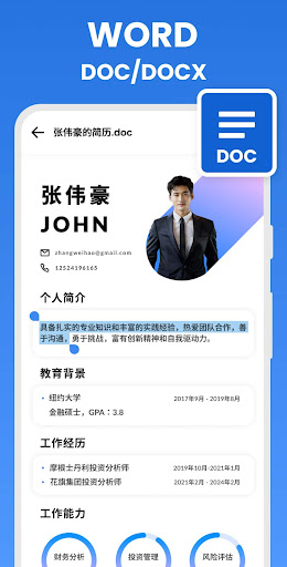 使用受信任的 Word 应用,可快速轻松地创建、编辑、查看和与他人共享文件。还可以查看和编辑附加到电子邮件 文档。无论你是博主、作家、记者、专栏作家、学生还是处理文档的项目经理,其方便都能如你所愿。Word 引入了 PDF 阅读器,让你能够更轻松地阅读 PDF。它可以让你在旅途中、睡觉前或任何你想要的地方阅读 PDF 和电子书。<br>制作有影响力的文本文档、剧本、博客、评论文章或简历。使用功能强大的工具自定义你的文档、信件、简历或笔记,让你能够使用最佳格式选项写出最好的作品。<br><br>自信创作<br>使用设计精美的新式模板,快速开始创作项目、作业、信件、博客、剧本、笔记、评论文章或简历。使用丰富的格式和布局选项来记下你的想法并以书面形式表达。无论使用什么设备,文档格式和布局都将保持原样并且美观大方。<br><br>舒适地阅读、编写和编辑<br>使用阅读视图,可在设备上轻松阅读长文本文档、PDF、信件、剧本等。通过将 PDF 转换成 Word 文档文件来编辑,轻松进行更改。编辑后将文档转换为 PDF 文件,仅需点击几下即可共享。<br><br>随时随地与任何人协作<br>在当前讨论的文本旁边进行评论,从而分享你的观点。所有人都可以加入对话,掌握对文本、布局和格式设置的更改。如果你和你的团队进行了更改,则可在 Word 中进行还原,以查看具有改进版本历史记录的早期草稿。<br><br>简化共享 <br>仅需点击几下即可共享 PDF 和文档文件,快速邀请他人编辑或查看你的文本文档。轻松管理权限,查看正在演示文稿中工作的人员。在电子邮件正文中直接复制 Word 文件的内容且不改变其格式,或将 PDF 和文档附加到电子邮件以便更轻松共享。<br><br><br>要求<br><br>· 操作系统版本:运行任何支持的 Android 版本,且具有基于 ARM 或 Intel x86 处理器。对 Kitkat 和 Lollipop 设备的支持将持续至 2019 年 6 月。<br>· 1 GB RAM 或更大<br><br>要创建或编辑文档,请使用屏幕尺寸为 10.1 英寸或更小尺寸的设备,通过免费 Microsoft 帐户登录。<br><br>使用适用于手机、平板电脑、电脑和 Mac 的符合条件的 Microsoft 365 订阅(请参阅 获得完整的 Microsoft 365 体验。<br><br>从该应用购买的 Microsoft 365 订阅将由 Play Store 帐户付费,且在当前订阅期限到期之前 24 小时内自动续订,除非已提前禁用自动续订。可在 Play Store 帐户设置中管理订阅。有效订阅期内不可取消订阅。<br><br>此应用由 Microsoft 或第三方应用发行商提供,且需遵守单独的隐私声明以及条款和条件。通过使用此应用商店和此应用提供的数据可由 Microsoft 或第三方应用发行商访问(若适用),并且此数据传输到、存储和处理的地点可能在美国,也可能在 Microsoft 或应用发行商及其关联公司或服务提供商驻地的任何其他国家/地区。<br><br>请参阅 Microsoft 最终用户许可协议,了解有关 服务条款。安装该应用,即表示你同意这些条款和条件:http://aka.ms/eula