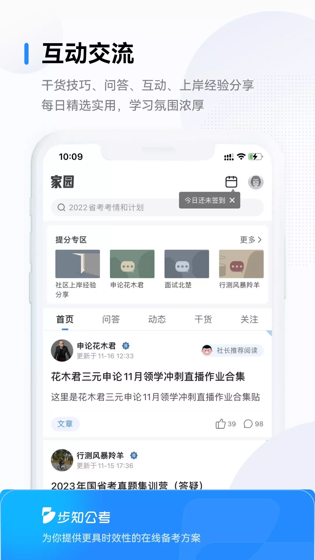 步知公考,是专为线上公职类备考人群提供学习、训练、交流的在线备考智能学习平台。 特色服务: 1、智能训练题库: 海量题库,收录大量试题,提供原创试题文字和视频+申论AI批改+面试示范作答。 2、训练营:网罗海量整卷、免费在线模考、视频解析课;FM晨读音频和文稿,轻松积累热点;面试对练答题点评一体,准确把握面试思维。 3、互动交流:每日更新老师们的干货技巧,更有学员动态、互动等。 立足于考情,追求备考效率及考试应变性,通过对线上学习场景的深入研究,提出更符合线上备考的学习、训练方式;AI赋能对能力课、能力训练、阶段测评、试题模拟进行全方位技术追踪,提供多维度视角,辅助用户自我学习管理,规划具有针对性的提升路径。 高效、实用、具有针对性是我们的追求。 客服电话:4000005784