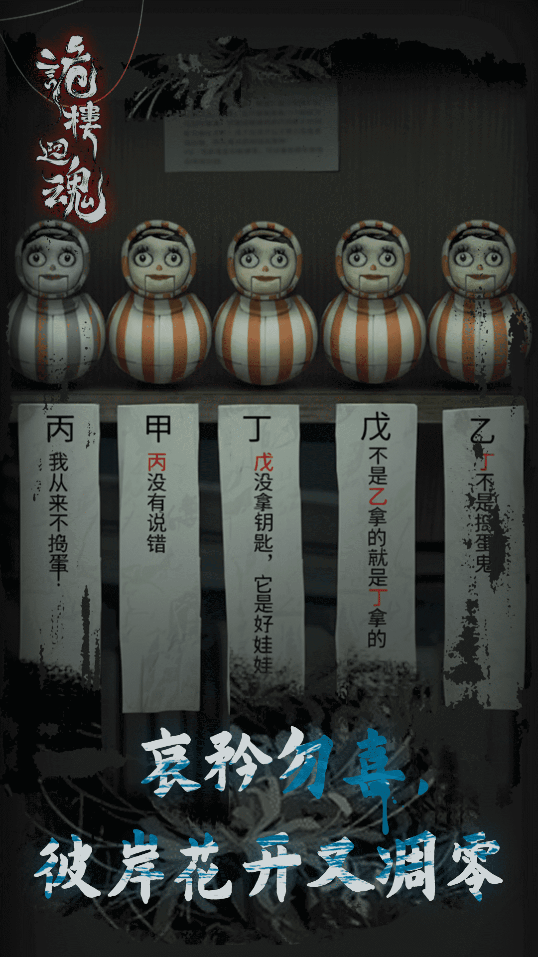 传闻人死后,魂魄附于骨上,到第七日遇天煞地冲,魂魄离骨而行,会回到生前最重要的地方和人身边看最后一眼,此为回魂。 【游戏简介】 金灯泣向风,鸦啼落筒楼。 之子归穷泉,重壤永幽隔。 穆一舟是眼下最炙手可热的恐怖小说家,但是他有一个秘密,就是他的眼睛能看到一些别人看不见的东西,他眼里光怪陆离的世界,也成为了他创作的灵感源泉。 但看到的越多,那些渐渐习以为常的东西也再难激起他的创作灵感。一日,一封诡异的邮件的到来,改变了一切。穆一舟和昔日好友前往了一个老旧的筒子楼,没想到在这里,发现了一个恐怖的秘密……