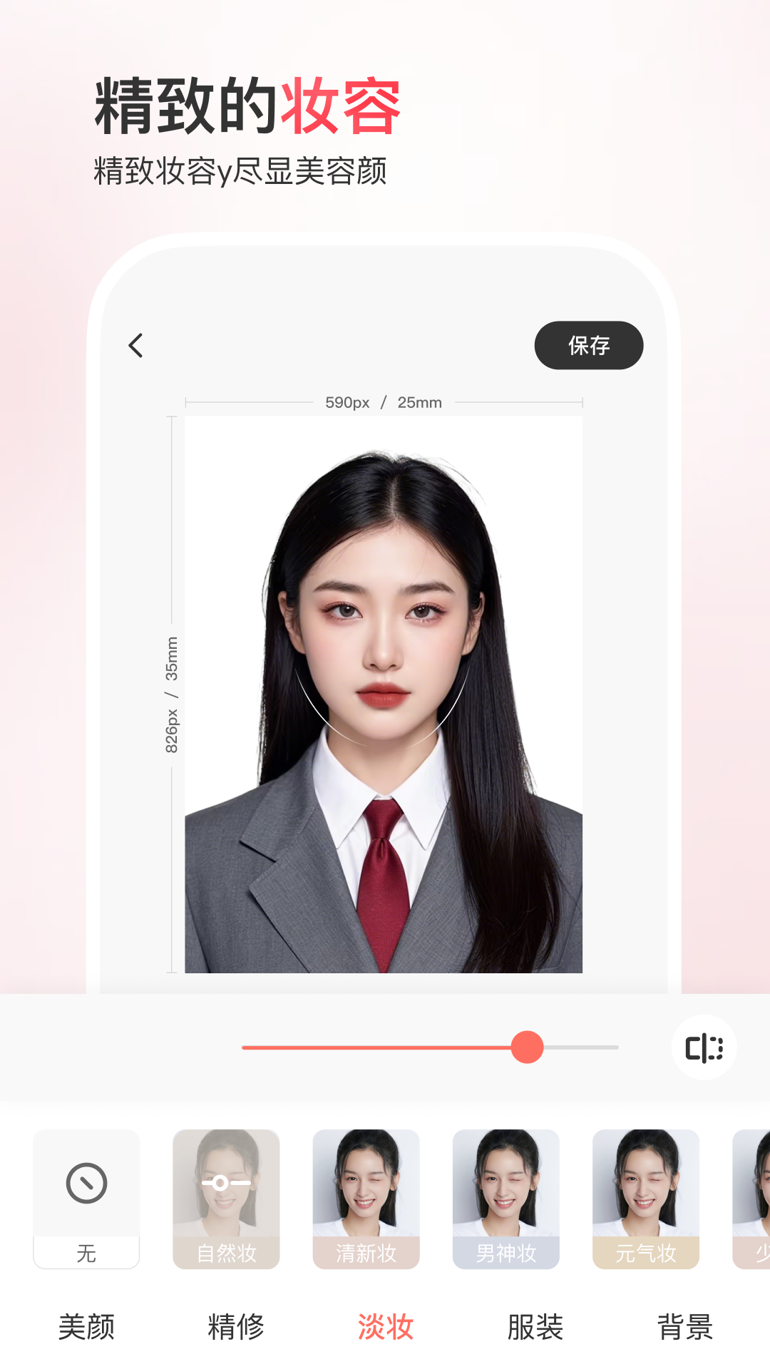 证件照制作寸照,您的手机照相馆!随时随地都可以拿起手机进行拍摄证件照,让你足不出户就拿到美美的证件照。<br>1.【涵盖多种需求场景,海量规格任选】<br>不仅满足您一寸、二寸、小一寸、小二寸、三寸、四寸等日常证件照需求,还涵盖各类报考:公务员考试、研究生报考、教师资格证、会计资格证报考、成人自考等学历考试、计算机等级考试、英语四六级、普通话水平测试等语言考试,导游证等上百种资格类考试证件照;社保证、驾驶证、身份证等证件;各地区或行业信息采集、毕业生图像采集以及简历照片等,满足证件照制作的各种场景。<br><br>2.【操作简单,多种底色一键保存】<br>根据您选择的照片规格上传或拍摄照片,系统自动裁剪,算法确保人像的正确位置及比例,除红底、白底、蓝底背景色任意选择外,更有渐变蓝、渐变灰等多种高级底色,让您的证件照与众不同!<br><br>3.【超清美颜, 免费打造自然裸妆感】<br>依托美图实验室海量图像处理技术积累,在线推出超清美颜,让您在家轻松获得裸妆感证件照,无惧素颜,一键拍出自然妆感。<br><br>4.【智能AI换装,精准识别真实自然】<br>男女服饰、可爱童装,花样潮服自由选择,智能AI自动识别,一键贴合,让您无需出门,轻松获得相馆级体验。
