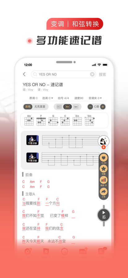 海量曲谱任你挑选 我们的曲谱库包含了大量的简谱、吉他谱、钢琴谱、尤克里里谱、鼓谱, 包括四线谱、五线谱、六线谱, 类型有和弦谱、有声谱、图片谱, 支持下载电子版和打印纸质版, 辅助训练和演奏功能还有 多轨伴奏:音轨控制支持预备拍、一键静音、涵盖电吉他、打击乐、贝斯、键盘、木吉他、其他等6种乐器,同时支持节拍器,支持12种谱调随意切换; 鼓机:区分前奏尾奏,支持加花;涵盖流行、摇滚、非洲鼓、金属、布鲁斯、放克、爵士、电子上百种风格个性切换; 节拍器:支持自定义定速,从20至250拍数按需调整,支持四分音符、八分音符、三连音、十六分音符、六连音、三十二分音符 无论你喜欢是经典的流行曲,热门的电影原声,还是传统的民族音乐,我们都能满足你。在毛瓜谱中,你将发现一个音乐曲谱宝库,我们拥有超过数万首的曲谱,覆盖各种流派,包括流行、古典、爵士、摇滚、电子等。 适合所有水平的唱歌、吉他、钢琴、尤克里里爱好者,无论你是刚开始学习的新手,还是已经颇有造诣的表演者,我们都有适合你的曲谱。每一份曲谱都有详细的演奏指南,帮助你更好地掌握演奏技巧。 有声谱,让你听见音乐的魅力 我们的应用不仅提供静态的曲谱,还提供有声谱,你可以在听的过程中学习和弹奏,让你更直观地感受到音乐的魅力。 曲谱下载,随时随地学习和弹奏 我们的应用支持曲谱下载,你可以随时随地学习和弹奏,不受网络限制。轻松找到您喜欢的曲子,并且下载或打印出来,无论是为了学习、练习还是表演,都能满足您的需求。 支持横屏练习、投屏设备、自定义图片谱放大缩小 ·吉他谱,尤克里里谱,均能自由切换和弦谱使用(海量曲谱资源) · 曲谱自动播放,和弦简化,和弦级数切换,升降调功能(可根据用户技术水平调整曲谱难度) · 吉他和弦优化,尤克里里和弦优化,键盘和弦优化(吉他和弦音阶练习,finger solo) 如在使用过程中有疑惑或建议,可前往APP【我的】-【帮助与反馈】-【问题反馈】中给我们留言反馈,我们会有客服跟进~ 也可以通过以下方式,与我们联系: 官方网站:https://www.maogua.com 官方公众号:毛瓜(maogua_com)