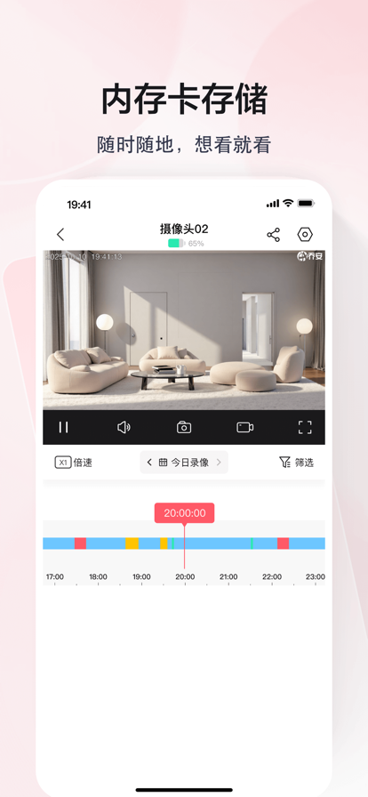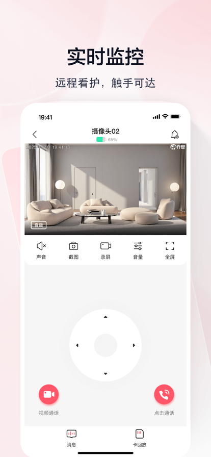 “TCL摄像机”是为智能摄像头服务的移动客户端。 通过云监控P2P技术,TCL摄像机可实现实时监控、视频聊天、远程回放、异常报警等功能,譬如联机智能摄像头后。您可体验以下功能: ·看店看家:随时查看家里、商铺、办公室等场所的实时视频,让您轻松管理办公,随时护家安全,实现远程关爱、智能陪伴,分享精彩生活。 ·自动追踪:跟踪移动物体,锁定异常目标,并录制视频。 ·分区侦测:可设置重点区域侦测与声音报警,侦测到异常的人体活动/环境后,现场警报响起并即时推送异常信息,帮您第一时间发现安全隐患。 ·智能声控:联动天猫精灵,语音控制开启/关闭智能摄像头,让您使用更顺心。 TCL摄像机,智联生活,随时看家看店看宠,让您的生活更安全更精彩。