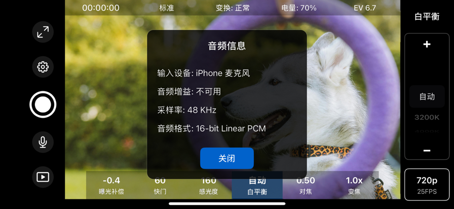 这是一个专业的iOS相机应用,集成了视频录制、播放和高级相机控制功能。应用支持横屏全屏视频播放,具备自定义播放界面和视频列表管理;提供完整的相机参数调节功能,包括曝光补偿、快门速度、ISO感光度、白平衡(支持自动和多种预设模式)、对焦和变焦控制;实现了点击对焦、实时参数监控、视频缩略图预览和元数据显示等专业功能,为用户提供专业级的拍摄和视频管理体验。