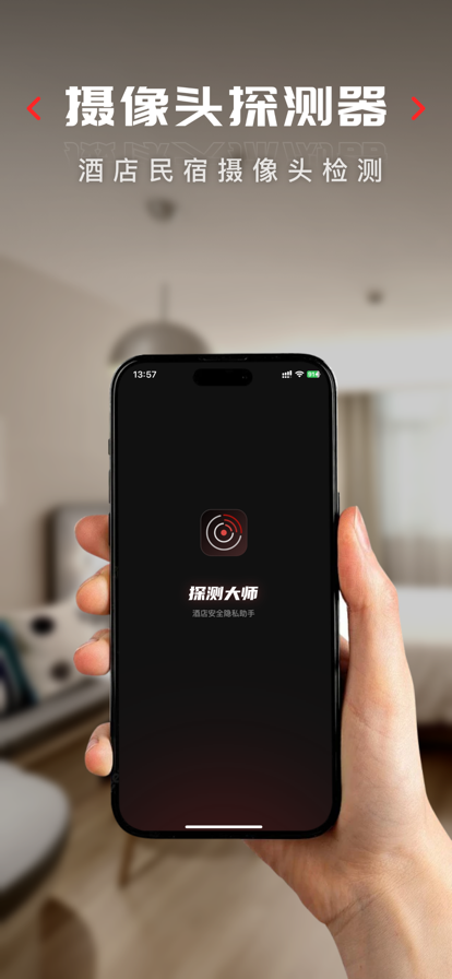探测大师App是一款可以扫描酒店房间WiFi网络连接设备、房间附近蓝牙设备,通过磁力计探测磁性物质及通过AI拍照识别房间物体并给出房间环境安全分析建议的工具。 主要功能: 1. WiFi无线网络探测:连接WIFI后,一键扫描所有连接到该Wi-Fi网络信号下的网络设备。 2. 蓝牙设备探测:开启蓝牙开关,授权搜索附近的蓝牙设备并实时显示该设备的距离。 3. 磁力检测:通过手机磁力计传感器,感应环境中金属及磁性物体磁场强度变化,通过算法转化为可视化数据,磁力值过高会进行提示,并展示摄像头、电视等电子设备磁力指数范围。 4. 红点扫描检测:通过摄像头自动识别红点像素,可放大或缩小焦距扫描可疑红点,包括电视机、插座、沙发、照明、烟感器、沐浴头、排气扇、花瓶、灯罩、空调、路由器、纸巾盒等区域进行全面排查。 5.智能分析:通过智能技术分析环境,获得防拍分析与建议。 6.报警器:危险时刻?一键点击,启动报警 7.伪装来电:摆脱无效社交场景或者有事需要紧急离开,可通过伪装来电功能帮助 订阅服务:应用内提供订阅服务,除非你在当前有效期结束前至少24小时内取消,否则订阅会自动续订,订阅费用将在您确认购买时通过APP Store账户收取。用户在购买后也可以去APP Store账户设置中管理订阅,选择关闭自动续订。 取消订阅:若需取消续订,请进入设定-->进入iTunes Store及App Store-->点选App ID,选择检视Apple ID,进入帐号设置,点选订阅,选择取消订阅。如果您在订阅期结束前至少 24 小时取消订阅,订阅将自动续订。 隐私政策:https://sxt.taijinnuo.com/privacypolicy_ios.html 用户协议:https://sxt.taijinnuo.com/userprivacy_ios.html 会员协议:https://sxt.taijinnuo.com/vipprivacy.html