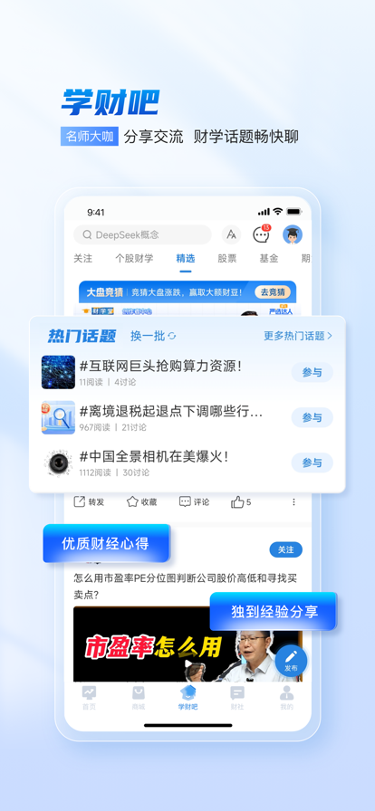 一亿投资者的信赖之选 财学堂是国内权威的在线投资者教育视频平台,致力于为公众提供最纯净、最专业、最系统的金融教育服务。 通过邀请金融领域资深名师亲临授课,录制海量高清投教视频课程,实现优质金融财学教育内容输出。课程内容覆盖股票、债券、期货、期权、保险、银行等多类型金融行业,帮助投资者完善投资理论体系,提升投资实战成功率。 同时推出了《财课堂》、《财学百科》、《每日一招》等公益投教视频课程,增强投资者风险教育,倡导安全投资,推动投资者教育事业更好发展。 【核心特色】 权威:邀请金融领域资深名师亲临授课,多维度分享投资经验 全面:内容含括股票、基金、银行、债券、期货、期权、保险等 专业:量体裁衣,系统化金融体系课程,专业讲师1V1解答课程疑惑 【产品亮点】 海量战法课程:更及时,更专业,全国最权威、科学、完整的投资知识体系 知识框架清晰:K线基础带您入门,仓位管理控制风险,系统交易实操战法,私人定课搭建个人投资体系,层层递进更好学习。 专业讲师答疑:多年独家教学战法倾囊相授,1V1举手交流,1V1坐诊完善交易行为,提供系统科学的选股策略。 【功能亮点】 全部财学:更全面。技术面、基本面、理论体系、资金管理和风控管理、交易心理、理财规划超过6000部海量投资课程一应俱全。 名师汇聚:更专业。资深金融大咖、投教老师、业内投顾、财经名师专业授课。 财学聊聊:更广泛。课后讨论随时交流互动,快速拓展投资交流圈。 私人定课:更实战。独家教学战法,实战推算演练,搭建系统科学的选股策略。 私聊老师:更私密。专属投教名师1V1举手提问,亲切互动解疑答惑。 授人以鱼不如授人以渔,财学堂坚持“帮助投资者做好投资”为己任,将持续推出更多优质金融教育内容,让“人人都做合格投资者”成为现实。
