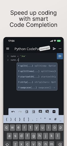 在您的移动设备上运行 Python 代码并学习 Python。<br>使用这款人工智能驱动的移动编程编辑器成为 Pythonista。<br><br>在手机上进行 Python 编码。<br>您可以从此应用程序运行、执行和评估 Python 代码、脚本和程序。 <br>您设备上的 Python 3 解释器。<br><br>使用功能齐全的代码编辑器编辑代码,该编辑器支持 Python 代码突出显示、代码完成、错误检查、撤消、重做操作、打开文件、主题、颜色和字体。<br><br>编写函数和类并从标准库导入模块。<br>内置人工智能助手,每当您的代码出现错误时,人工智能都会建议如何解决它。<br>AI Assistant 还可以重构您的代码、清理代码、检查错误、编写注释和文档字符串或只是进行解释。<br><br>只需点击一下即可运行脚本和程序,并在控制台窗口中查看输出。<br><br>内置调试器,逐步运行您的代码并查找错误。<br><br>具有完整代码语法突出显示的轻量级应用程序,就像真正的 Python IDE 一样。<br>对于任何想要学习 Python 和编写 Python 代码的人来说,这都是完美的应用程序。<br><br>处理多个文件,并将程序组织成模块。该应用程序作为一个真正的 IDE 运行。<br><br>通过内置的编码挑战提升您的 Python 技能,解决这些挑战以练习和学习 Python,并增强您的编程和解决问题的技能。定期添加新的编码问题。<br><br>通过官方教程学习Python。<br>从应用程序中阅读官方标准库文档。<br>了解数据类型、函数、类和编程结构。<br><br>测试您的编程知识,编码编辑器会告诉您是否正在编写有效的代码。<br><br>无论您是初学者还是专业人士,这个应用程序都将帮助您提高 Python 编程技能。使用此编码编辑器成为 Pythonista 和更好的开发人员。<br><br>请注意,某些功能仅在开发人员升级后可用。