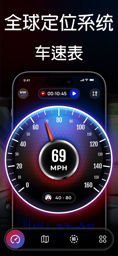 该应用已完全支持中文。汽车测速器的设计目的是帮助您测试车辆的加速度和最高速度等数据。 该应用提供了0-100km/h即0-60mph模式,或0-50km/h即0-30mph模式的测试选项,记录最高速度或进行完全自定义的测试模式。无论您身在何处,驾驶何种车辆,您都可以用汽车测速器测试车辆的性能,无需任何外部装置。 该应用还可以测试1/4或1/8英里(0-400米或0-200米)的比赛,是当今商店同类应用中功能最完整的之一! 您还可以与朋友分享测试结果,向朋友展示车辆性能。为了计算您的车辆达到设定的速度所花费的精确时间,该应用使用一些精密的技术来估算速度达到的确切时刻,因为GPS只能提供大约每秒一次的速度信息。 请在遵守当地交通规则和交通标识的情况下进行合法测试! 我们坚信您会喜欢我们的汽车测速器应用,我们并非完美,因此如果您有任何建议或在应用中发现有问题的地方,请通过contact@codingfy.com与我们联系。