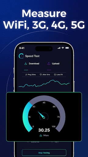 适用于 WiFi、4G、5G 和宽带的 WiFi 速度测试和互联网速度测试应用。<br><br>一键测试下载速度、上传速度、ping 值、抖动并分析 WiFi 信号强度。完美适用于游戏、流媒体和远程办公。<br><br>速度测试是一款快速、免费且精准的 WiFi 速度测试和互联网速度测试应用,可帮助您在几秒钟内测量实际网络性能。无论您使用的是 5G、4G LTE、WiFi 还是宽带,这款强大的互联网速度测试工具只需轻轻一点即可提供可靠的结果。<br><br>使用这款高级网络分析器,检查您的互联网速度是否符合 ISP 的承诺,并快速识别导致延迟、缓冲或下载速度慢的问题。😎<br><br>⚡主要功能:<br><br>互联网速度测试!🔥<br><br>速度测试让您只需轻轻一点即可快速测量下载速度、上传速度和 ping 延迟。该应用支持 5G、4G LTE、WiFi 和宽带连接,提供实时速度图表和精准结果,让您立即检查您的互联网速度是否符合 ISP 的承诺。<br><br>Ping 和抖动测试!🌟<br><br>Speed Test 提供高级 Ping 和抖动测试,帮助您检测网络延迟、不稳定以及导致卡顿、缓冲或掉线等问题。此功能非常适合游戏玩家、主播和远程办公人员,让您优化网络,享受流畅的在线游戏、视频通话和直播体验。<br><br>WiFi 分析器和网络扫描器!✨<br><br>内置 WiFi 分析器可让您检查 WiFi 信号强度、扫描附近的无线网络,并识别最佳且最不拥挤的 WiFi 信道。这有助于您在家中或办公室找到 WiFi 信号最强的位置,并快速诊断影响网络性能的问题。<br><br>速度测试历史记录和数据使用情况!💥<br><br>Speed Test 会自动保存您的速度测试历史记录,方便您比较不同网络的过去和当前网络性能。这款数据使用追踪器可同时监控移动数据和 WiFi 使用情况,帮助您高效管理数据流量,避免意外超额费用。<br><br>🙌 用户选择这款测速应用的理由 🙌<br><br>✅ 快速免费的 WiFi 测速<br><br>✅ 精准的互联网速度测试和 5G 速度测试<br><br>✅ 强大的 WiFi 分析器和网络分析器<br><br>✅ 游戏、流媒体和远程办公的理想之选<br><br>✅ 简洁的用户界面,一键测试,无需设置<br><br>立即下载 WiFi 和 5G 测速应用,一键即可在几秒钟内免费测试您的网速。使用这款值得信赖的互联网速度测试和 WiFi 分析应用,全面掌控您的网络性能。
