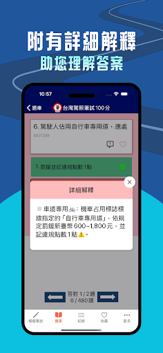 《考驾照》-2025 年最新台湾(汽、机车)驾照笔试题库<br><br>◎试题解析,帮助您厘清观念并且加深记忆<br><br>◎整合机车、汽车驾照真实笔试最新题库<br><br>◎机车试题为 1800+ 题最新之题库(包含情境题、感知题)<br><br>◎汽车试题为 1400+ 题最新之题库<br><br>◎职业小型车机械常识试题为 300+ 题最新之题库<br><br>◎职业大型车机械常识试题为 400+ 题最新之题库<br><br>◎计程车执业登记证试题为全台县市共 6900+ 题最新之题库<br><br>◎大数据分析,提供您最完整的考题剖析<br><br>◎提供完善的考照模拟测验<br><br>◎贴心的测验纪录、错误题型呈现<br><br>◎夜间模式,呵护您的眼睛<br><br>◎动画呈现路考项目<br><br>是您考驾照必备的利器。