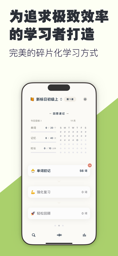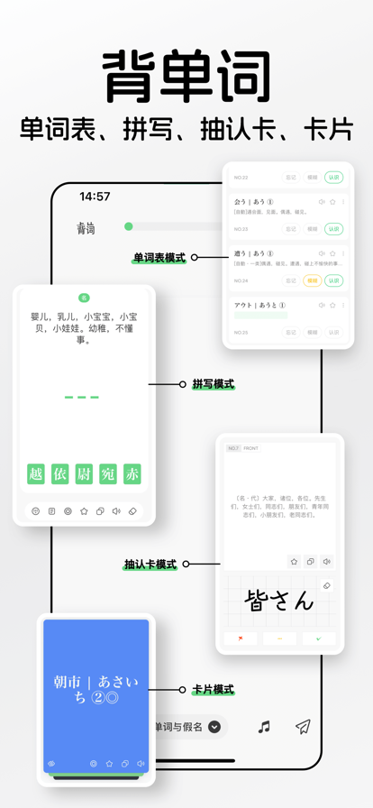 -一款不营销,拒绝AI数据,只做精品的日语记单词APP -一款集合多种做题模式和特训模式(单词随身听、单词配对、单词拼写、限时挑战),涵盖日语权威教材|JLPT|语法|考研203|J.test|生活常用日语的日语背单词APP -一款界面精美,记忆科学,数据准确的日语记单词A PP -一款包含每日、每周、每月数据分析,时刻帮助你准确掌握学习情况的日语背单词APP -一款融入番茄钟学习法和白噪音学习法的日语学习APP -一款融合艾宾浩斯遗忘曲线和日本脑科学的科学记忆单词APP --隐私政策:https://xhoid9hw42.feishu.cn/docs/doccn6PI6YinHMNVzdchNV65SLg --服务条款:https://xhoid9hw42.feishu.cn/docs/doccnYtAI9foHjCajUN8ZhK8KEg