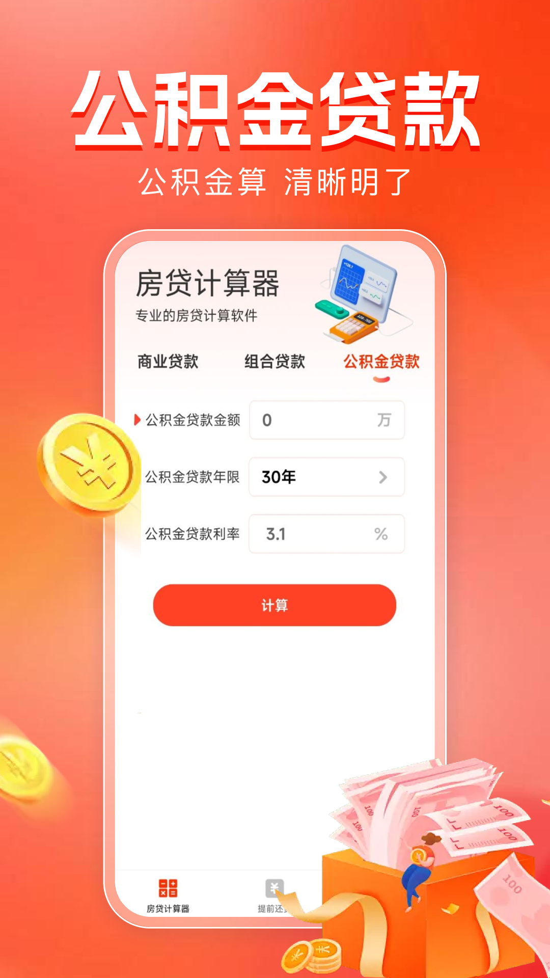免责申明: vivo应用商店仅为信息发布平台,不对第三方发布的金融产品信息真实性及准确性负责,也不提供投资、理财、贷款等服务。vivo和金融产品之间不存在任何关系,不构成任何担保或承诺。提醒您使用此类应用时提高风险意识,勿将身份证号码、银行卡密码、验证码等敏感信息透露给第三方,如您通过vivo应用商店进入第三方网站或应用进行投资、理财、贷款等行为,由此产生的损失,vivo不承担任何责任。<br><br>房贷计算器,集商业贷款计算器、组合贷款计算器、公积金贷款计算器于一体,帮助你解决购房过程中的各种计算难题。<br>覆盖商贷、组合贷、公积金贷,结果清晰,一目了然。<br>其它发现:提前还款可以省多少利息