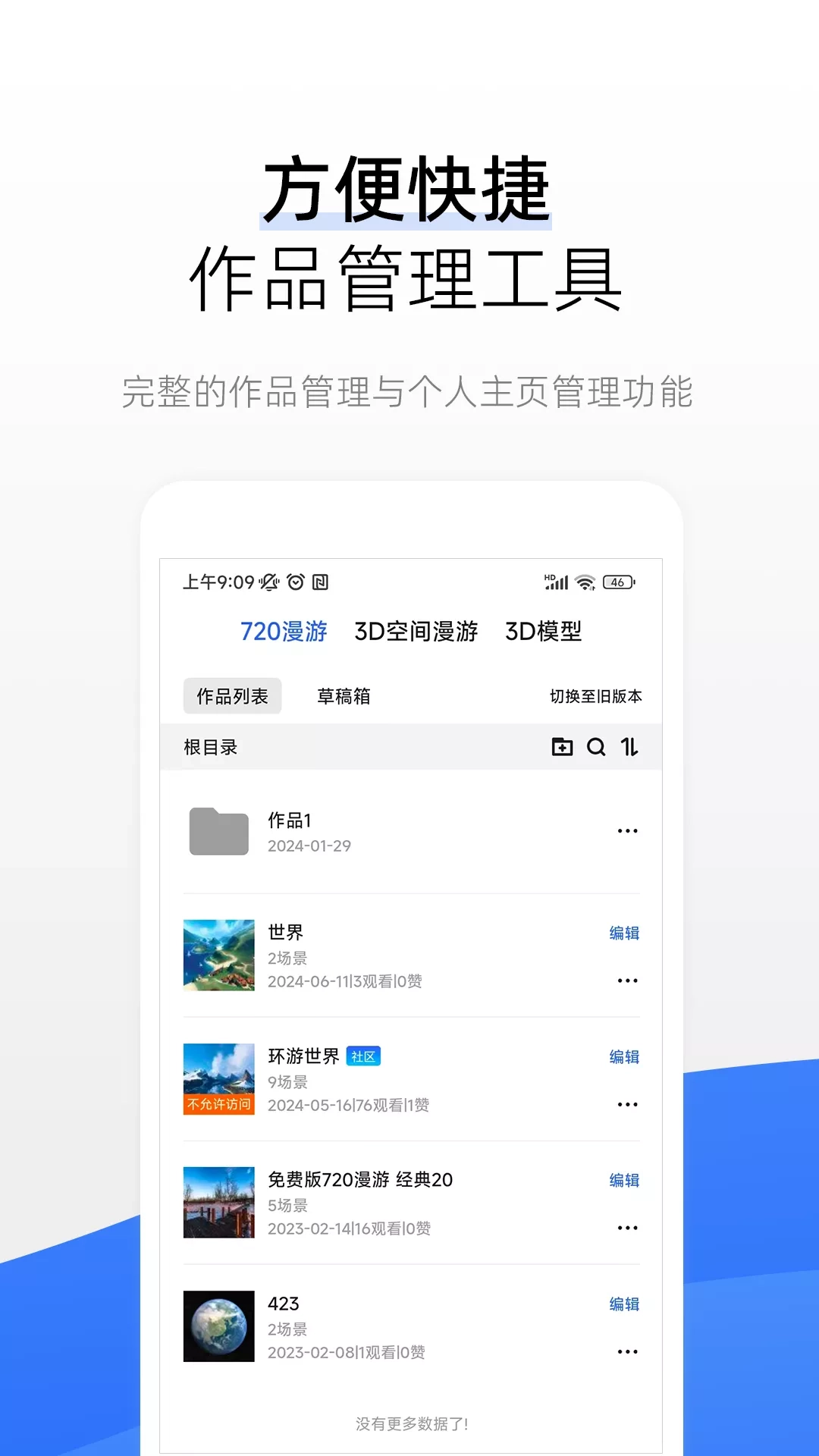 【上720云,欣赏国内优质精品全景】 全景室内设计、新房装修、旧房改造,景观园艺,更有国内外各网红景点最美全景展示。繁华的城市、静谧的村落,热闹的民俗节日、人物纪实,看不到的景观时刻,中学高校、展馆展览、全景原画、汽车内饰等,全景创作者们全都用全景的方式记录下来,给你重新打开这个世界的大门。 【用720云,做炫酷的强交互全景漫游H5,学先进的全景课程理论/实操】 在线上传、制作,傻瓜化操作,快速分享至微信/QQ/抖音/快手/皮皮虾等社交短视频平台,快捷骚操作,不需要技术含量! 在线课程、专业授课,海量免费视频教程,定期线上培训,快速自学全景图、全景视频的制作方法、后期技巧、商业干货进阶教程。 【找720云,顶尖技术团队提供全景拍摄、H5制作服务】 业内公认的全景摄影师认证体系,为覆盖全国范围的全景摄影服务提供高标准的制作水准、高效率的执行流程、严格的验收标准。 覆盖全国50个城市的合伙人制度,更适合全景行业良性发展的合伙人,保证行业良性竞争和售后服务,给客户体贴入心的全程服务体验。