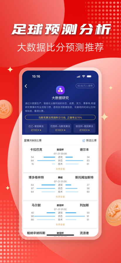 千嗨体育——足球实时比分、热门赛事分析预测APP。 专为足球体育爱好者打造的赛事数据参考分析库,提供赛程发布,热门赛事专区到即时比分动态,球赛文字直播,历史比赛成绩,五大联赛积分榜排名,进球集中时段分布,球队情报、球料资讯等前沿内容。(涵盖英超、德甲、意甲、法甲、西甲五大联赛及世俱/界杯、欧冠、日职韩K美职等赛事) 【即时比分】 足球比分、球场动态实时更新,更有比赛现场动画直播、重要事件实时文字直播。 【赛事分析】 多维度数据发布,首发阵容、替补阵容、球员伤病,球员身价、球队近期攻防、历史交战记录等,打造一站式赛事研究、模型自研分析体系。 【辅助分析工具】 赛事预测:根据爱因算法、牛顿进球数等维度赛事模型,测评赛事胜负走向。 数据研究:大数据队组拆解分析,结合球队战意及实力,评测比赛对阵伯仲占比。 情报站:集合赛前信息球料资讯,整理出球迷喜欢的热门赛事球队优缺点,对比分析赛况。 进球模型:依据数据分析模型,筛选得出看点相对较高的比赛和进球参考数据。 牛牛分析:结合球员贡献、伤病信息、球队近期战意、胜负趋势,提供赛事对阵测评。 胜负走势:整理全部赛事赛果,绘制赛果胜负走势图,可推论球队调整的状态和战意大小。 趋势观察:通过球队状态、重要球员、信心指数、曲线特征多极维度对比,测评赛况赛果。