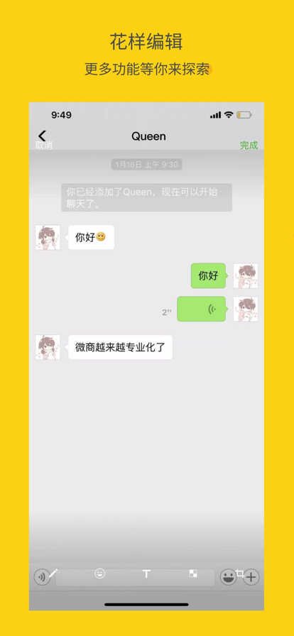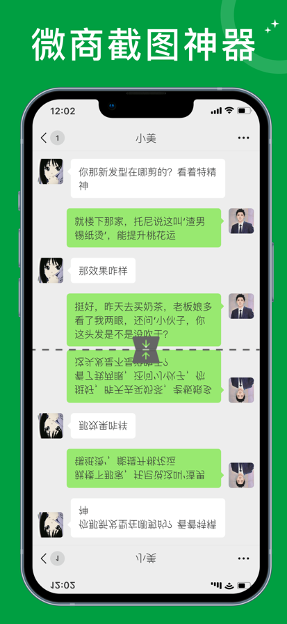 截图超人是款专门针对微商用户的营销利器,2000万微商用户的共同选择,微商截图、模拟器、对话聊天、微商营销以及娱乐的首选平台。 - 娱乐对话和模拟器可以自定义用户头像、文字和表情,生成你想要的搞笑逼真对话。 - 制作截图,输入简单的文字就能生成各种截图,嗨翻朋友圈,装X首选必备