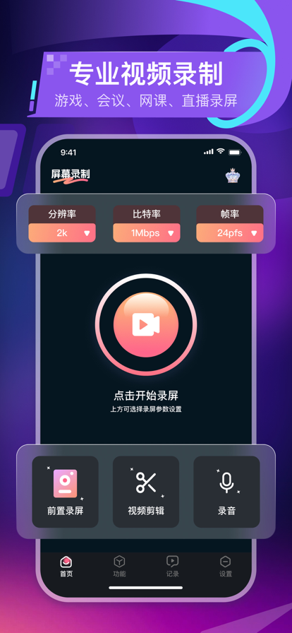 欢迎使用录屏APP!录屏APP是您在iPhone上捕捉屏幕活动、创建教程、分享游戏成就或记录精彩时刻的理想工具。无论您是专业内容创作者还是普通用户,都可以轻松使用我们的APP来满足您的屏幕录制需求。 主要功能: 高清录制: 支持高质量的屏幕录制,让您捕捉每一个细节,包括清晰的声音和流畅的视频。 前置摄像:手游爱好者可为自己的视频添加精彩解说,突出高光时刻。 视频编辑:轻松剪切/旋转/倒放视频,改变视频速度,慢镜头、四倍速随心调节。手动设置专业视频参数,调整亮度/对比度/饱和度/锐度,更改视频背景色,制作原创视频。 内置音频录制: 您可以同时录制内部音频和麦克风声音,使您的教程和演示更具吸引力。 打开facecam:将你的直播交互添加到视频中。使用麦克风添加音频评论。 实时RTMP直播屏幕:实时视频流式传输随时随地轻松直播iPhone屏幕。只需点击几下,即可在YouTube、Twitch和Facebook上直接播放游戏或直播。 视频画幅:支持多尺寸,可调整至16:9/9:16/4:3/1:1等视频比例。录制网课&视频会议,轻松复习,编写会议记录,是居家办公助手。视频录制时长无限制,游戏达人可轻松分享录屏到直播平台。 导出和分享: 完成录制后,您可以轻松导出视频并分享到各种社交媒体平台,或通过电子邮件、消息等方式与他人共享。 自定义设置: 录屏提供多种设置选项,包括视频质量、帧率、码率等,以满足您的个性化需求。 适合以下用户和使用场景: • 视频制作和视频剪辑爱好者 • 播客和脱口秀制作者 • 抖音和Youtube视频搬运 • 培训机构的老师和学生 • 卡拉OK爱好者 • 游戏爱好者 亮点: * 高清录制:支持自选分辨率,帧速率和比特率。 * 实时直播屏幕 * 多功能视频编辑器 - 剪切视频:剪掉不需要的部分 - 为视频添加动听的音乐,让视频更精彩 - 压缩视频大小,与朋友分享更简单 - 拼接视频:将多个视频拼接成一个视频 - 为视频添加旁白和配音 - 裁剪视频画面,改变视频的宽高比 - 旋转视频方向 - 更改视频的播放速度 - 将视频变成GIF动图 * 不限制录制的时间! * 无水印,录制干净清爽的视频! * 支持添加自定义水印,将自己的商标或品牌设置为水印,防止视频被盗。 Terms of Service: https://www.freeprivacypolicy.com/live/43665f1a-836b-4fc9-9d18-33977d15b277 Privacy Policy: https://www.freeprivacypolicy.com/live/ee39fab3-8b9f-416d-a33a-d592be7b04de 关于录屏Pro订阅: 免费试用录屏Pro。只有当试用期结束时,您才会被收取订阅费,除非您之前取消了订阅。录屏Pro订阅每月或每年向您的iTunes收取费用。