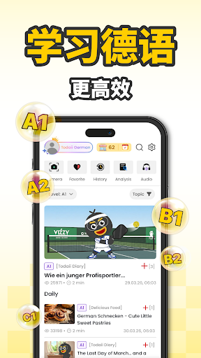 轻松征服Todaii German<br><br>这是一款通过新闻/文章自学德语的应用程序,按简单至困难的层次划分,帮助用户快速、高效地提高德语的听说读写能力。<br><br>Todaii German—带来高效的阅读德语解决方案。 在文章中集成学习查词功能,帮助学习者深入理解文章,增加词汇量和阅读理解能力。 每天只需 20 分钟,一个月后您就会取得很大进步。<br><br>多功合一只有一个应用程序,包括所有你需要的功能,在家里自学德语<br><br>📰<b>阅读德文报刊</b><br><br>✔ 每日新闻更新,包含来自官方来源的简短德语文章<br>✔听德语文章<br>✔ 一键查找任意单词、短语和句子<br>✔ 将新单词保存在笔记本中以使用抽认卡进行复习<br>✔ 自行翻译德语文章并与朋友分享<br>✔ 按级别和主题用亮色突出词汇<br>=> 有 2 个级别简单和困难的德语报纸,适合每个学习者的德语水平<br><br>📚<b>德语词典</b><br><br>✔ 查找词汇含义并查看句子中的含义示例<br>✔ 阅读更多常用句型,那个词的搭配<br>✔ 通过带语法分析的内置德语词典了解语法规则<br>✔ 查看插图 x3 记忆词汇的能力<br><br>🎧 <b>聆听德语</b><br>✔ 通过热门视频练习德语听力<br>✔ 用最热门的新闻练习听德语<br>✔体验顶级播客 让听力练习更有趣<br>✔ 所有视频都有字幕<br><br>★★★ "Todaii German" 应用程序适用于:<br><br>* 想在家自学德语的人<br>* 想要增加德语词汇量的人<br>* 想学听-说德语的人<br>* 学习德语的人随后被打断,学习效果不佳<br>* 学习者希望复习知识和创新学习方法<br>* 想挑战关卡,提高听说能力。<br> <br>每天通过新闻学习德语的方法不仅可以帮助您有效地学习德语词汇,还可以帮助您了解日常生活中单词的结构和用法。<br><br>⚠ 告诉你一个小窍门:德语文章种类繁多,话题众多,你会接触到各种陌生的词汇,避免考试时的困惑。 在阅读的过程中,学习者还将练习阅读技巧,如略读—略读主要信息,扫描—以找到你感兴趣的信息。 这是两个非常重要的技能,有助于缩短测试时间并非常快速地提高分数。<br>有志者,事竟成,Easy German会提醒您每天阅读,轻松为您养成阅读德文报纸的习惯。 <br>让我们下载应用程序并立即学习!<br><br>📰 Todaii German📰<br>如果您有任何问题或建议,请发送至邮箱:todai.easylife@gmail.com<br>您的贡献是我们将应用开发得越来越完善的动力。