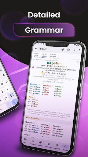 界面和翻译还提供俄语、阿拉伯语、法语、土耳其语、西班牙语、波斯语/波斯语、葡萄牙语、印尼语、捷克语、乌克兰语等 30 多种翻译语言,包括波兰语、意大利语。<br><br>入门必备<br>▸ 即时翻译(34 种语言 ↔ 德语)<br>▸ 清晰的语义,提供使用技巧和例句<br>▸ 完整的词形变化和动词变位表(名词、动词、形容词)<br>▸ 简化语法:格、时态、语气<br>▸ 语音输出发音(文本转语音)<br>▸ 同义词库:同义词和反义词<br>▸ 快速搜索,轻松收藏<br><br>练习与游戏<br>▸ AI 聊天,提供引导练习和精准答案<br>▸ 抽认卡游戏,帮助积累和巩固词汇<br><br>流畅的学习流程<br>▸ 查找单词 → 查看例句 → 在聊天中练习<br>▸ 点击聊天中遇到的生词即可打开翻译器<br>▸ 在翻译器、聊天、词典和网络资源之间共享单词/文本<br><br>内容与级别<br>▸ 超过 160,000 个德语单词和形式<br>▸ A1 词汇可离线使用<br>▸ A2-C2 内容可在线使用<br><br>语言覆盖范围<br>▸ 34 种语言的翻译,包括英语、俄语、乌克兰语、土耳其语、阿拉伯语、波斯语(波斯语)、西班牙语、葡萄牙语、法语、波兰语、意大利语、罗马尼亚语、荷兰语、日语、希腊语、捷克语、斯洛伐克语、希伯来语、塞尔维亚语/克罗地亚语/波斯尼亚语、保加利亚语、匈牙利语、挪威语、加泰罗尼亚语、白俄罗斯语、瑞典语、丹麦语、芬兰语、巴斯克语、乌尔都语、斯洛文尼亚语、马其顿语……等等<br><br>应用界面语言<br>▸ 英语、俄语、阿拉伯语、法语、土耳其语、西班牙语、波斯语(波斯语)、葡萄牙语、印尼语、捷克语、乌克兰语<br><br>应用内购买<br>▸ 专业版 — 包含所有主要功能 • 无广告 • 无使用限制<br>▸ 离线版 — 包含所有主要功能 • 无广告 • 无使用限制 • 离线词典<br><br>另请参阅:https://netzverb-dictionary.app